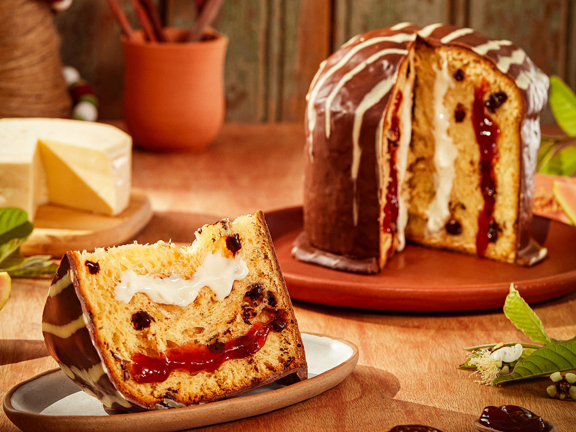 A rede apresenta os panetones recheados, que têm massa amanteigada de laranja perfumada e alveolada. Uma das opções é o Chocolate Premium (R$ 108,00 – 800 gramas), com gotas de chocolate 50% e recheio de ganache de chocolate ao leite com creme de avelã, coberto com blend de chocolates e crispearls (pérolas crocantes).