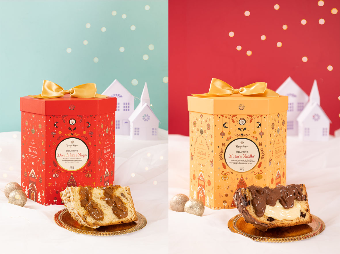 – Brigattone Doce de Leite e Nozes 750g (R$ 134,90): panettone com nozes, recheado com doce de leite e coberto com chocolate branco e nozes granuladas caramelizadas.