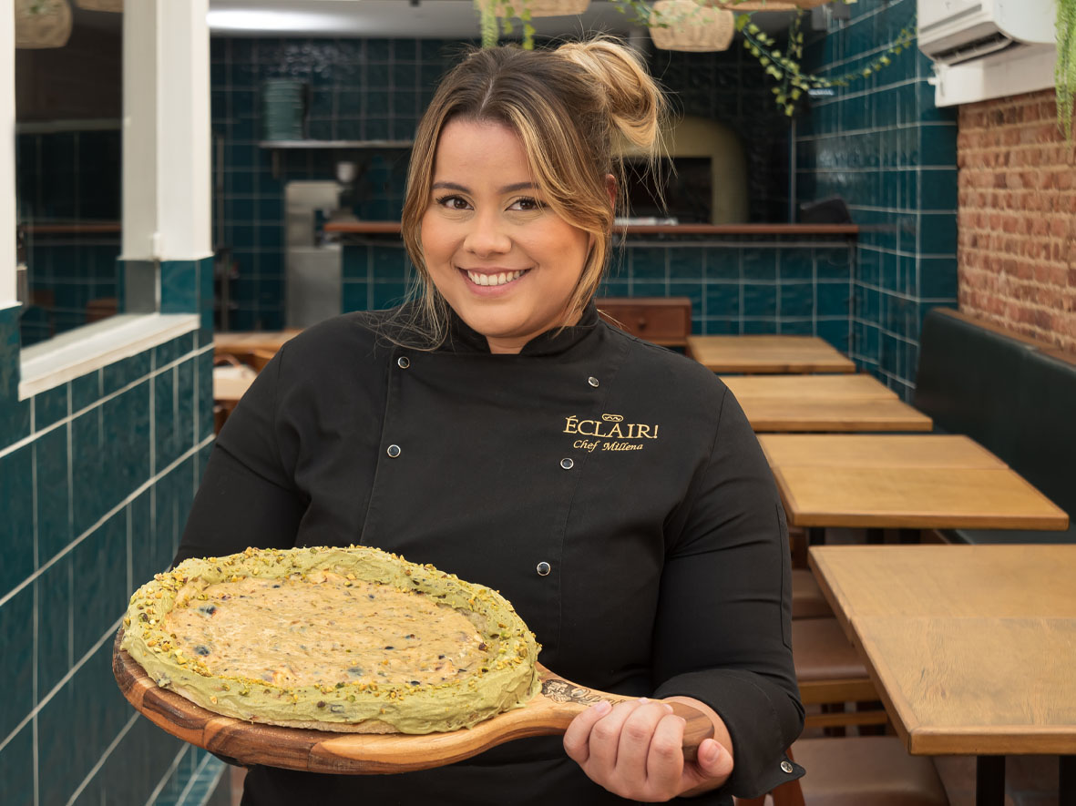 – Brigadeirão ao Leite (R$ 79,90 – aproximadamente 245g): recheado com brigadeiro de pistache, decorado com três mini brigadeiros de pistache.