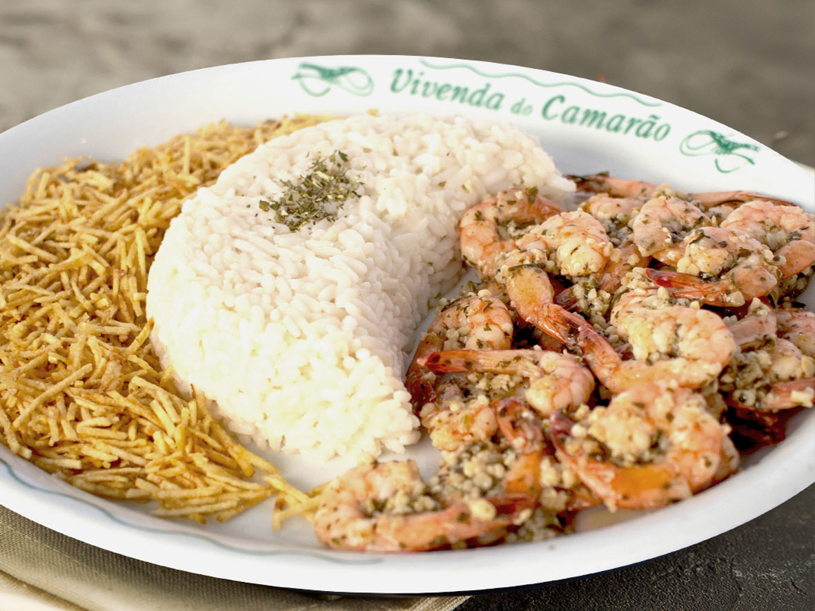 – Camarão Grelhado ao Alho e Óleo: camarão grelhado com meia porção do molho alho e óleo, acompanhado de arroz e batata palha.