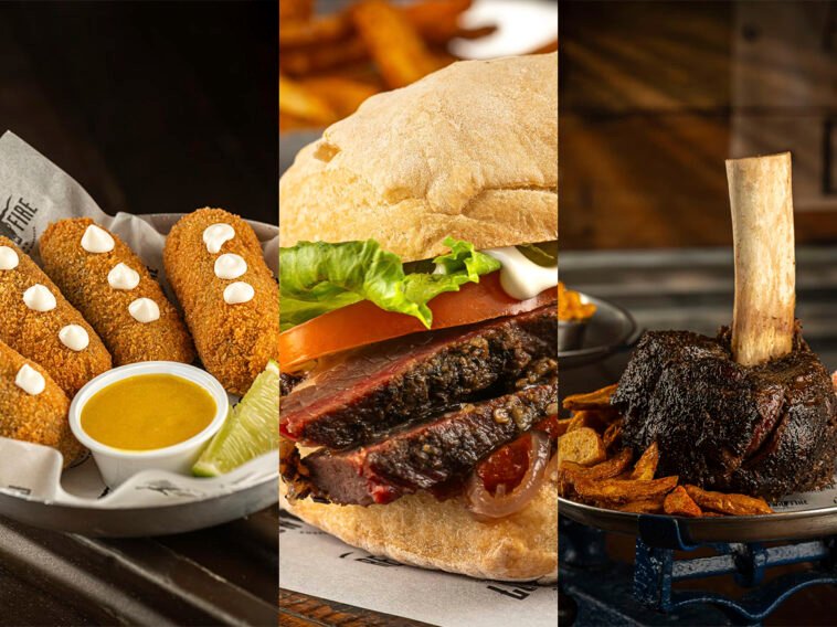 A nova rodada de pratos reforça justamente essa proposta. O principal destaque é o Hammer Steak, corte bovino retirado da canela do animal e servido com o osso longo limpo, em apresentação que lembra um grande martelo e por isso ganhou fama internacional como Thor’s Hammer. No Low Fire, a peça passa cerca de seis horas no pit smoker, dentro da técnica low and slow, e chega à mesa para compartilhar, acompanhada de quatro guarnições à escolha.