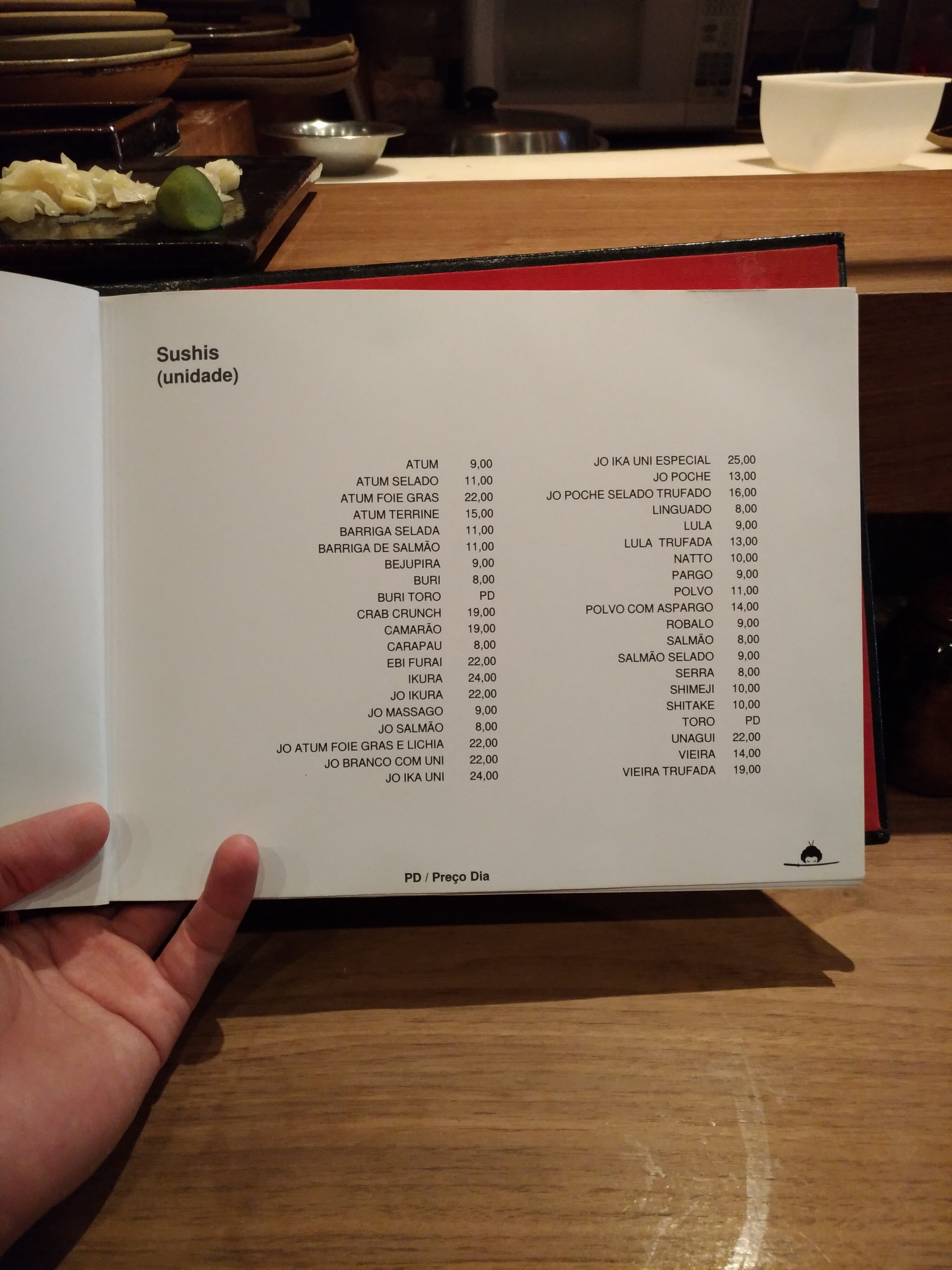 Como o Jo Atum Foie Gras e Lichia, Vieira Trufada, Polvo com Aspargo, Lula Trufada e Jo Poche Selado Trufado para opções diferentes.