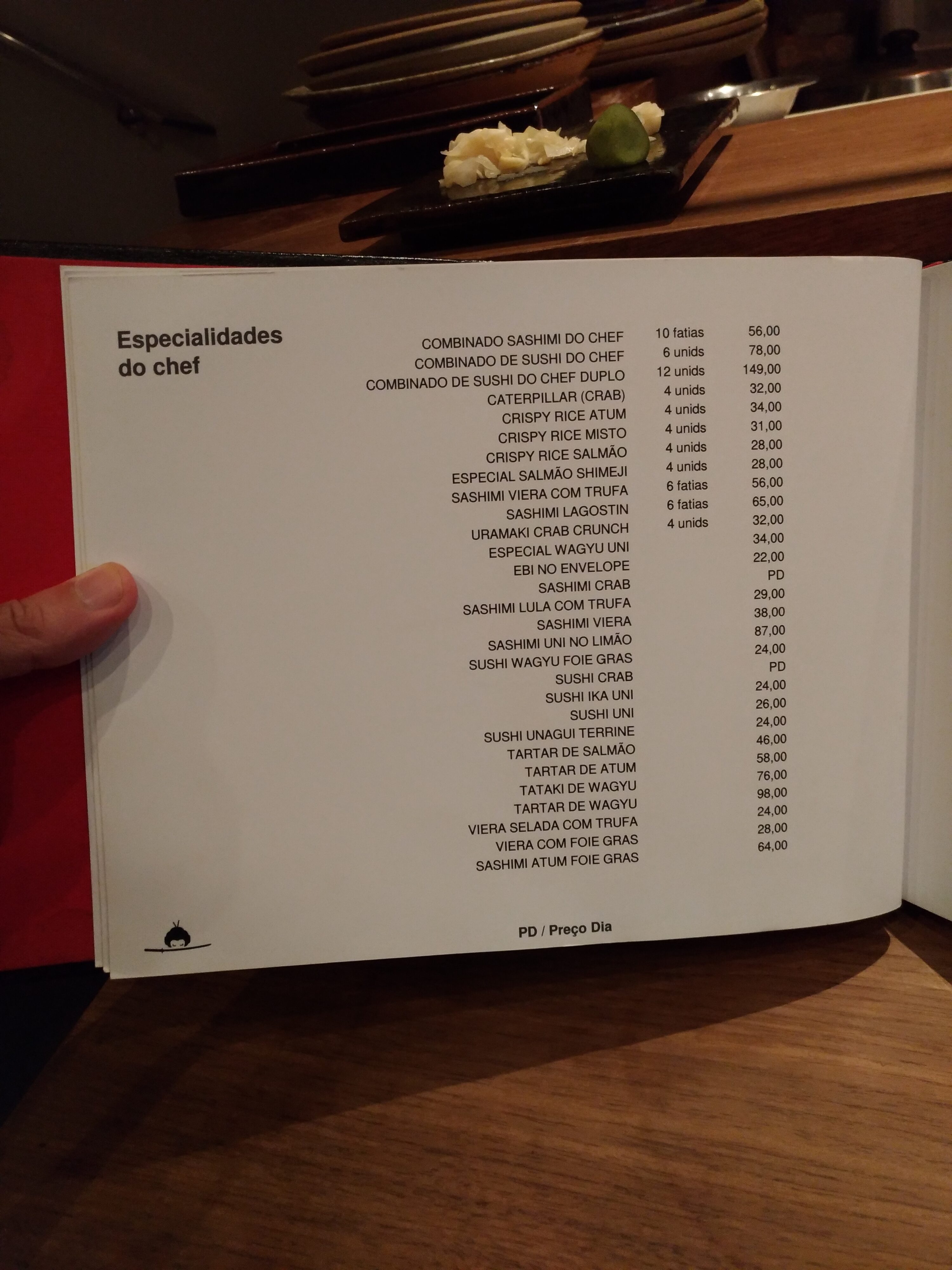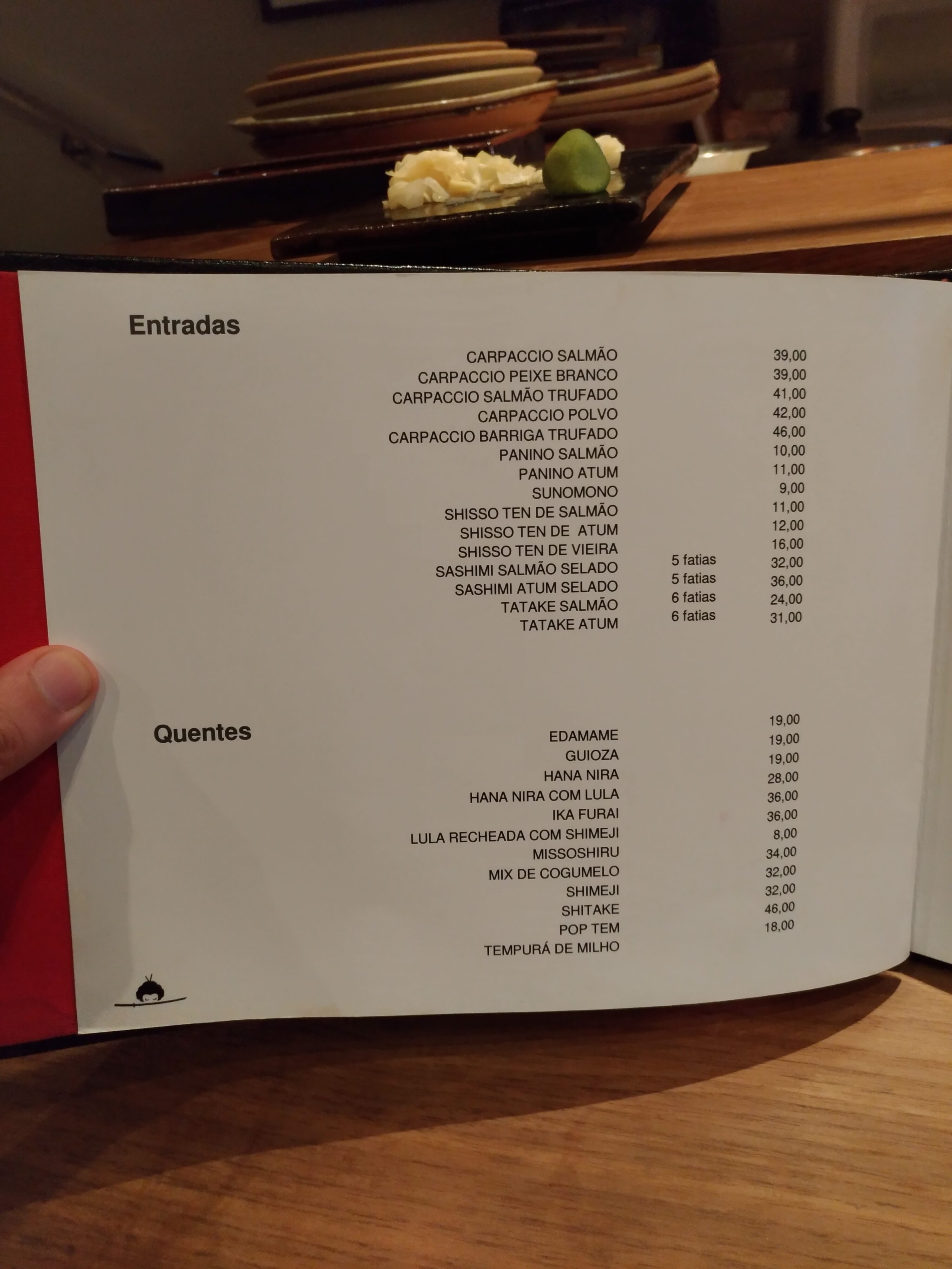 Para começar, dê uma olhada nos Paninos (salmão e atum), Carpaccios (Polvo e Barriga trufado) e o Shisso Ten.