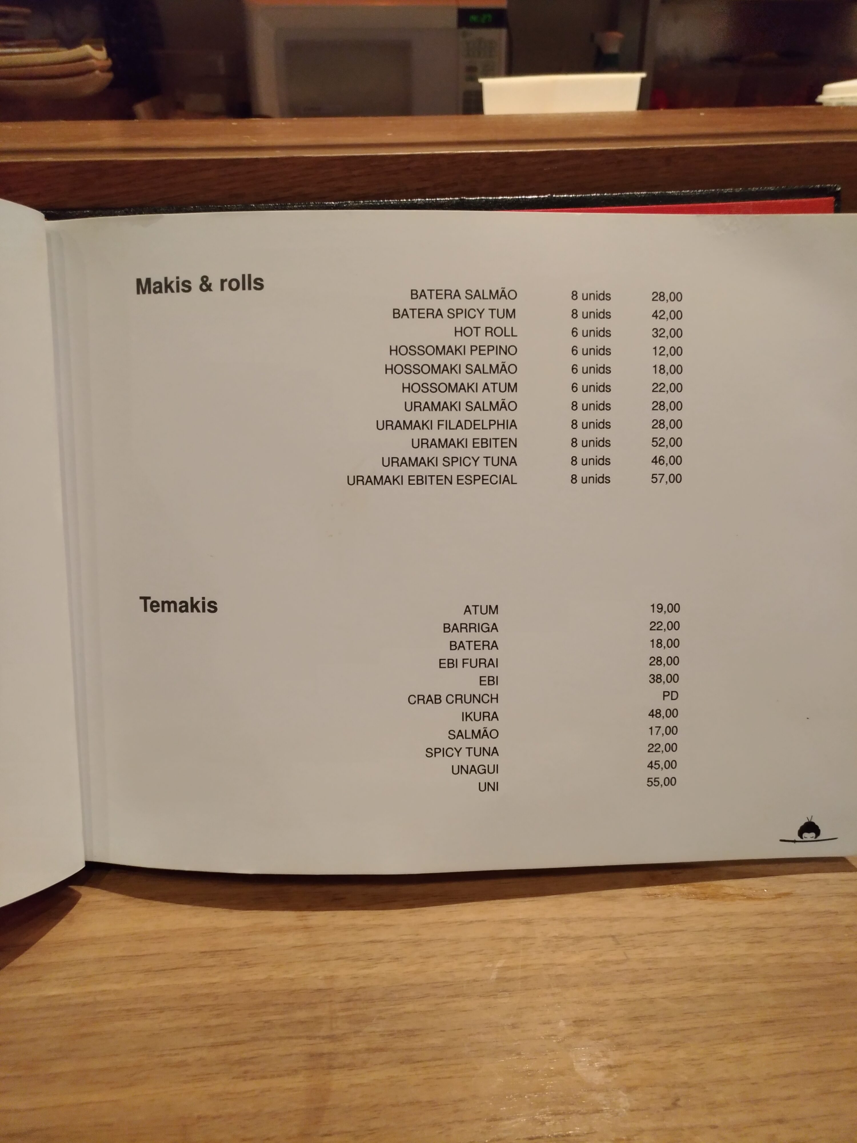 o Uramaki Ebiten Especial e o Batera Spicy Tum chamam a atenção.