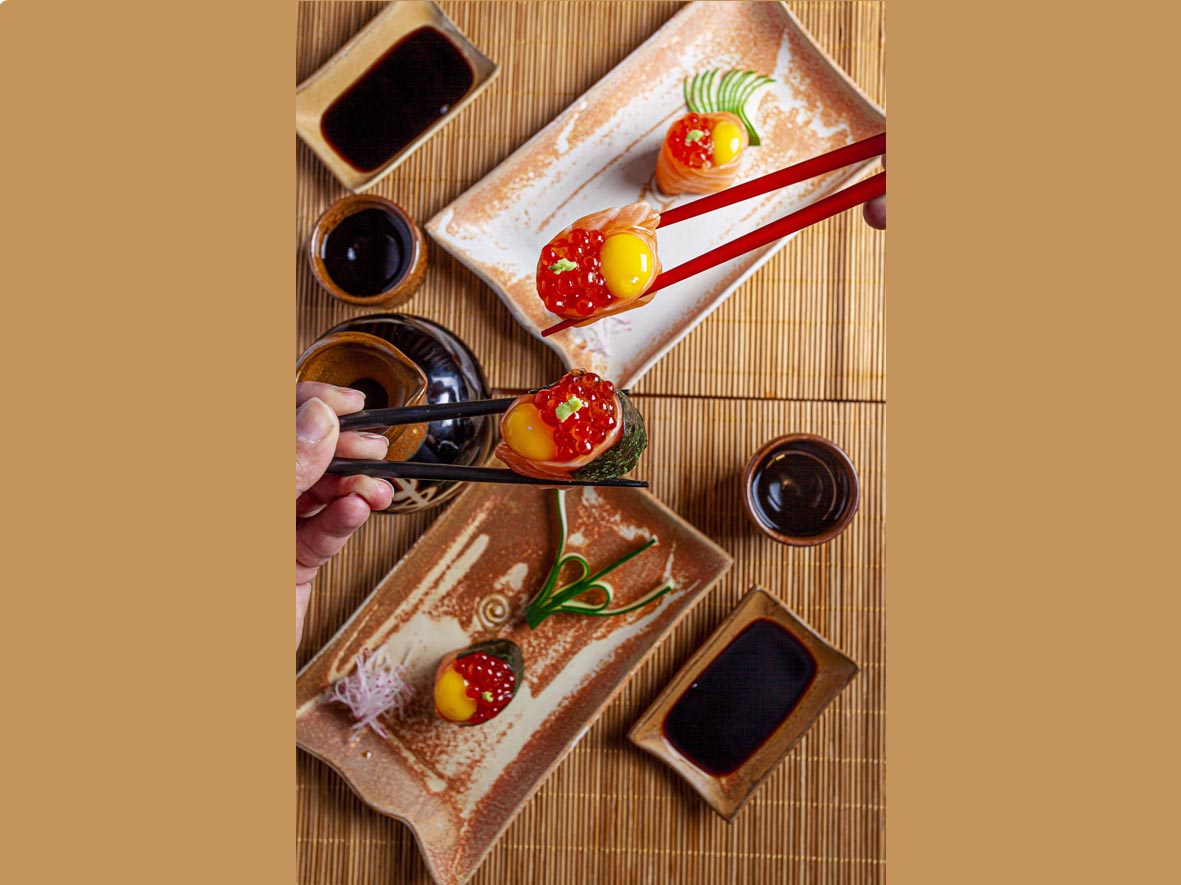 – Dupla de osamu (R$ 36,00): ovas de salmão, ovo de codorna enrolado no salmão.