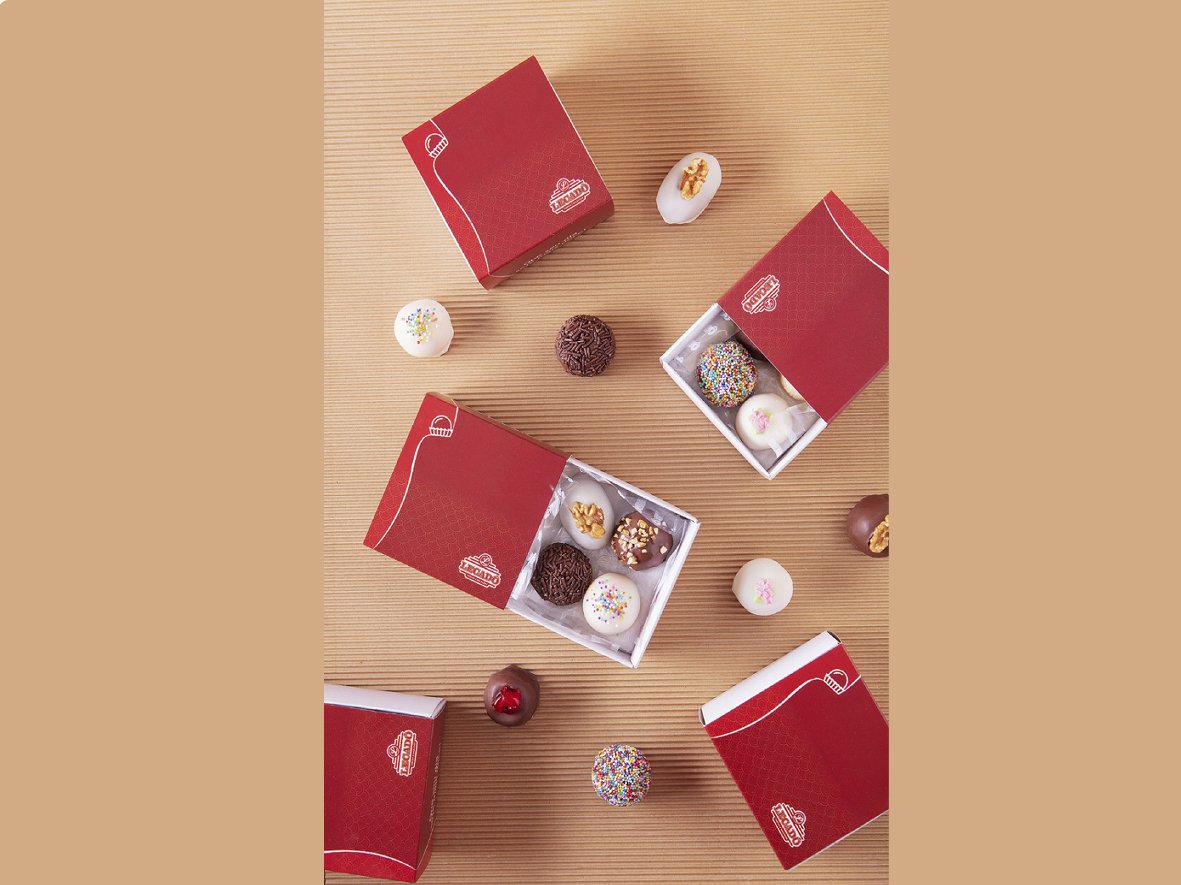 A confeitaria carioca lançou caixinhas de presentes que trazem docinhos e uma torta criados para a data. É possível escolher os doces que irão na caixa, o que também altera o valor do presente. Algumas das opções podem ser: