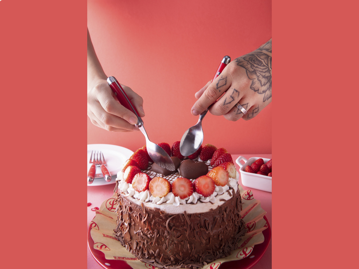 Além do presente, a marca também criou a Torta Baby Namorados (R$ 79,90). O doce tem massa de chocolate, recheio de chantilly e morangos, e cobertura de mousse de chocolate. A decoração é de corações de chocolate ao leite e morangos no topo.