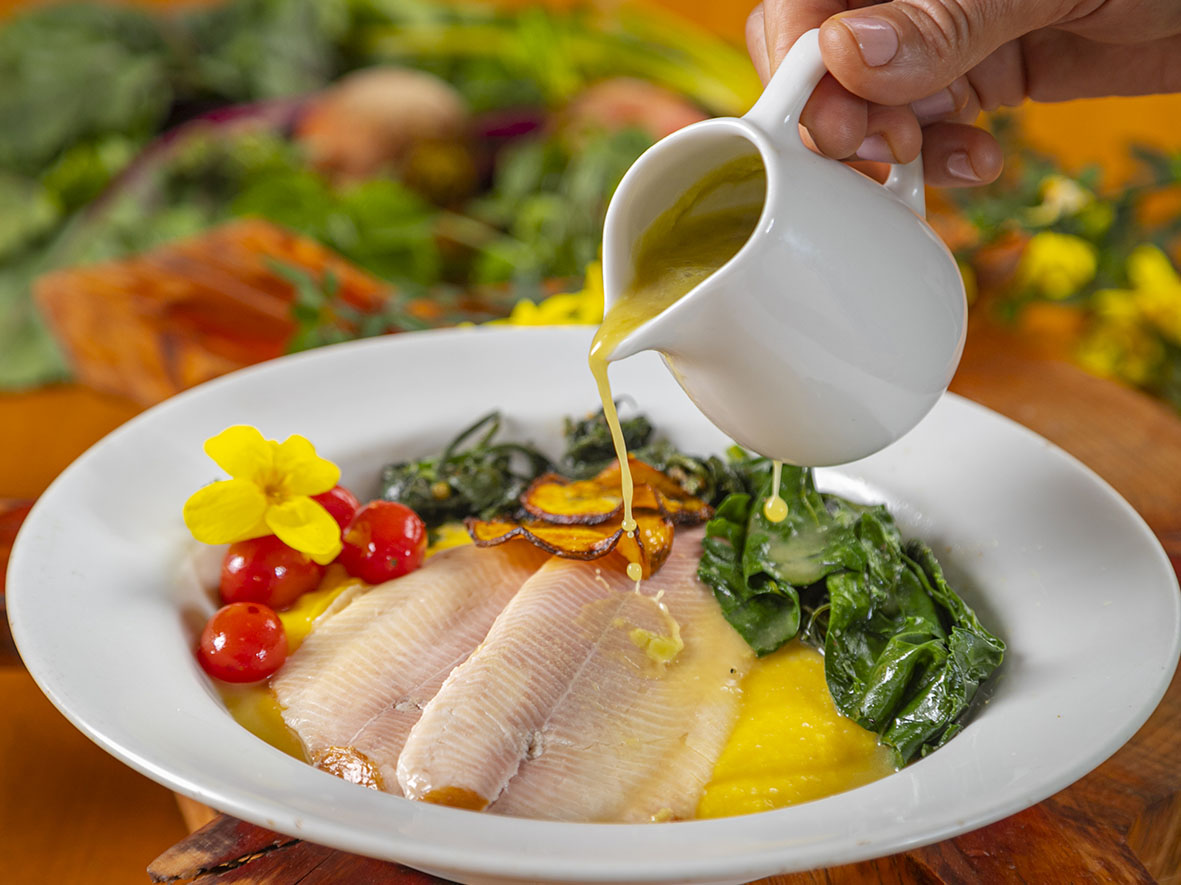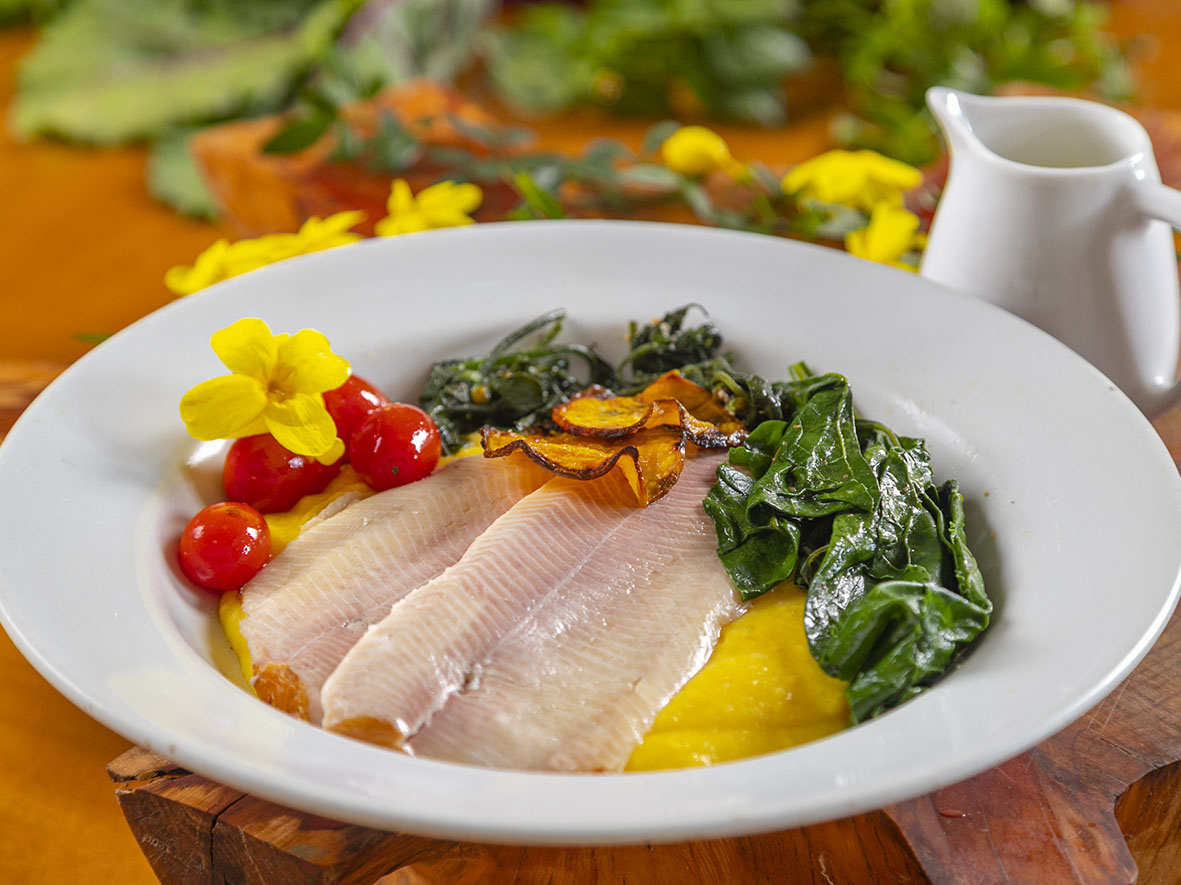 O Mantiqueira Panc tem polenta cremosa com beterraba amarela e queijo curado, truta defumada e tomate confit e folhas de beterraba em caldo verde de pancs (galinsoga parviflora, também conhecida como fazendeiro ou botão de ouro). O prato individual custa R$ 89,90.