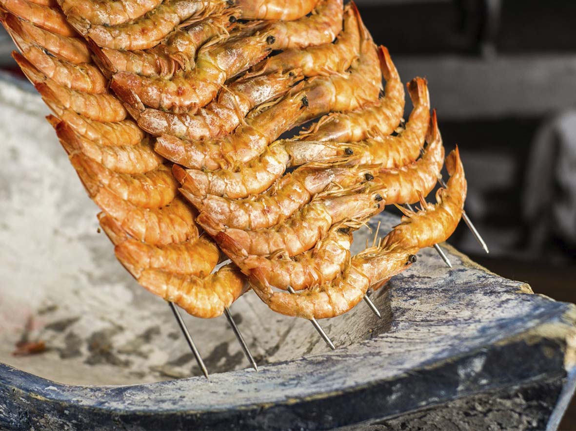 O primeiro é servido à vontade e nas mesas, assim como outros pratos: Camarão Crocante com Molho Tártaro e Limão, Camarão na Panko, recheado com Catupiry e Costelinha de Tambaqui.
