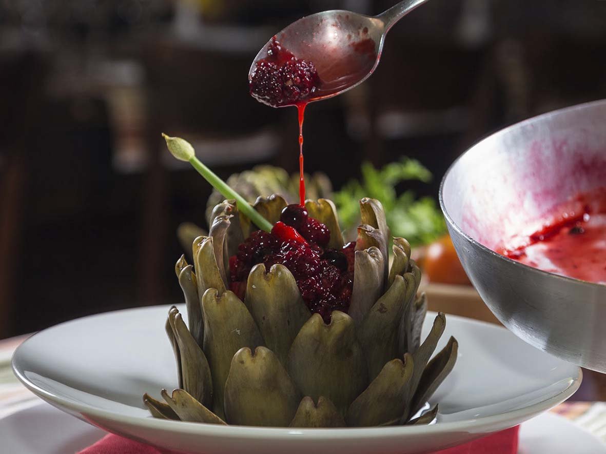 Para este ano, os pratos em destaque com a flor vão desde as entradas, como a Alcachofra ao vinagrete, servida fria, até pratos principais como Alcachofra ao molho gorgonzola e o Nhoque de batata roxa servido dentro da alcachofra.