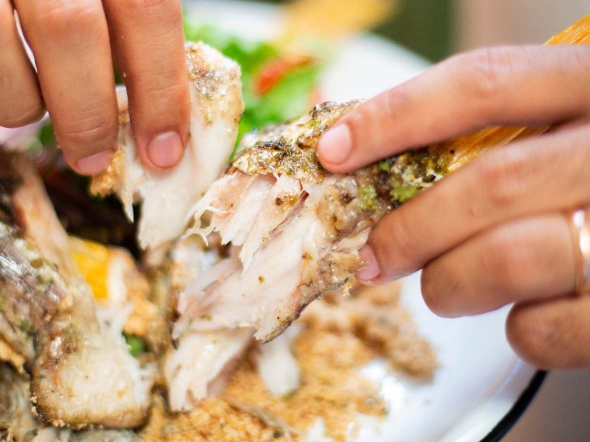 – Barbatana: nadadeira de peixe na brasa com farofa e coentro.