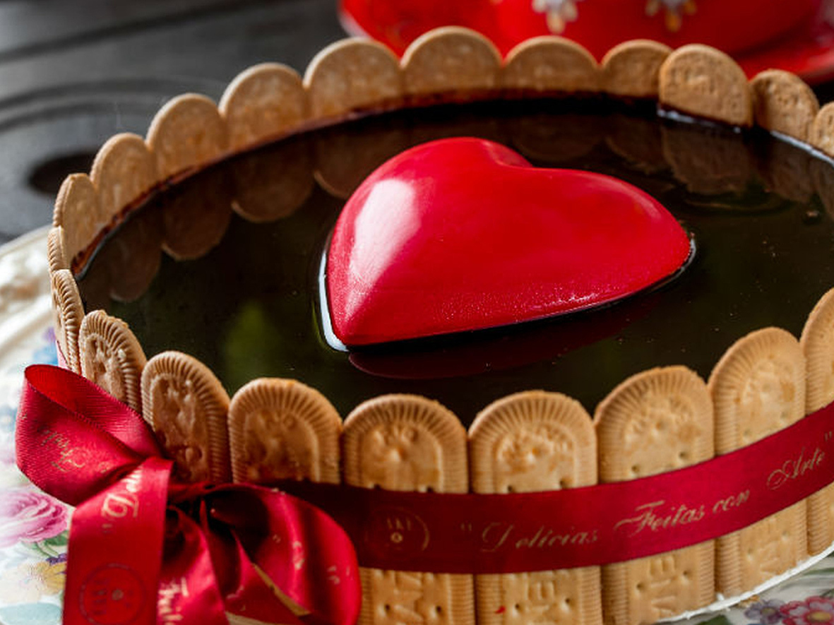 O doce tem biscoitos, recheio de creme doce e amanteigado, cobertura com calda de chocolate meio amargo e decoração com coração de chocolate meio amargo. Ou, ainda, a Torta Mousse Coração (R$ 90,00 – Baby – serve de 3 a 5 fatias; e R$ 180,00 – Happy – serve de 8 a 12 fatias), com mousse de chocolate meio a margo, cobertura de brigadeiro meio amargo e finalizada com raspas de chocolate meio amargo, decorada com coração de chocolate branco.