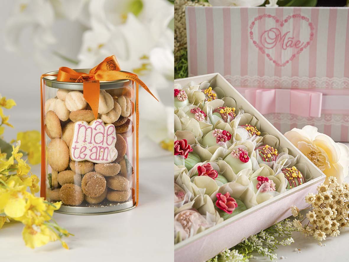 Também há os biscoitos amanteigados nos sabores castanha do Pará, limão siciliano e canela (R$ 69,00 a caixa) e o Minibolo decorado com flores e recheio de brownie com doce de leite (R$ 55,00 cada).