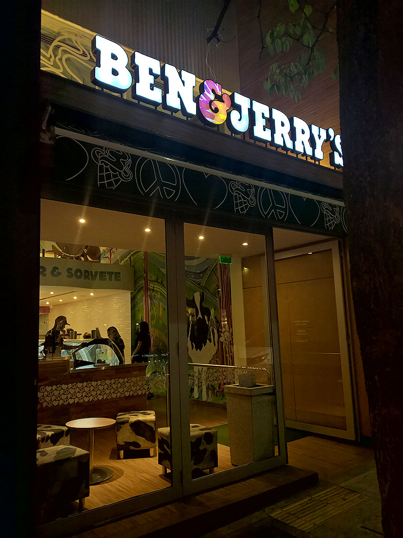 Localizado na Oscar Freire e depois de esperar muito tempo para visitar (confesso que eu fujo de muvucas e, por lá, demorou pra passar), fui conhecer a loja da Ben & Jerry’s que está na Oscar Freire, região de alto padrão de São Paulo, uma rua que é referencia de moda, pelas lojas que estão por lá, mas, eu vim falar de COMIDA! Mais precisamente, a parte da sobremesa.