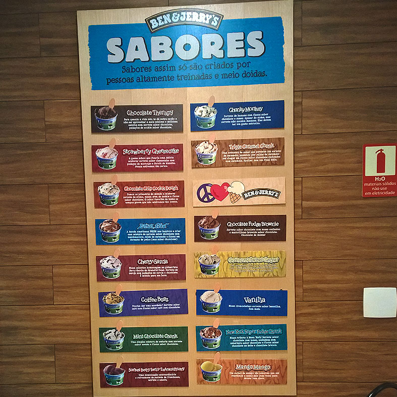 Seus sorvetes são conhecidos por serem BEM caprichados, no sentido de encontrar grandes pedaços de chocolates, cookies e seja lá mais o que tiver de gostoso, ou seja, se esta afim de chutar o balde, Ben & Jerry’s é uma ótima opção para adoçar o seu dia.