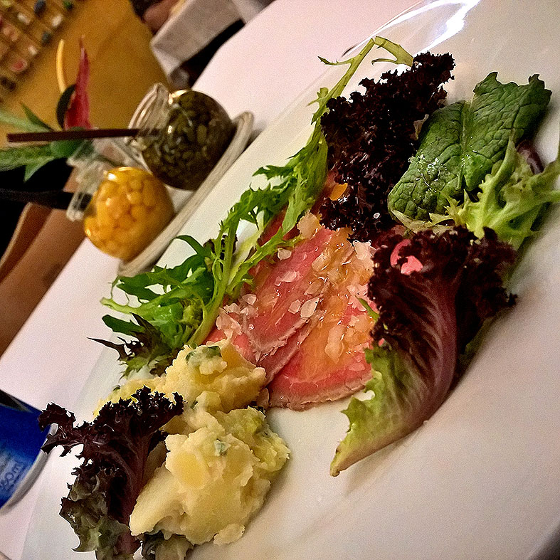Vamos por partes (já diria o Jack, O Estripador kkkk), a entrada é saborosa e a combinação vale a pena, o sal marinho combina bem quando você come com um pedaço de tudo. O rosbife esta macio e bem fininho, delicioso.