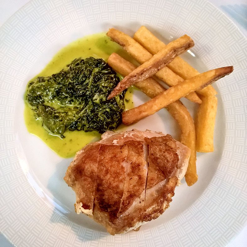 Segunda : Supremo de frango com creme de espinafre e fritas.