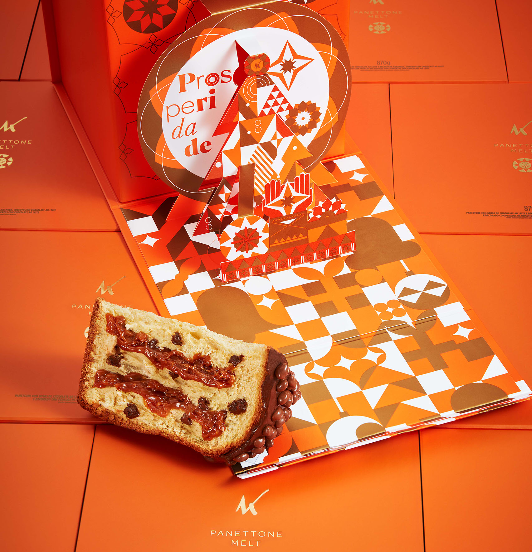 A grande novidade é o Panettone Melt, com massa tradicional, gotas de chocolate ao leite, recheio de caramelo e decorado com pedaços de cookies coberto por chocolate ao leite. Tem 870g e custa R$ 99,90.