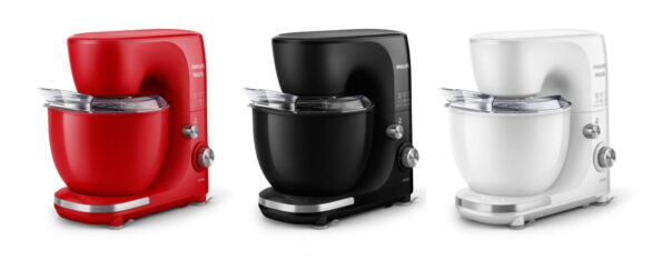 O novo produto – a Batedeira Planetária Philips Walita – traz bowl de cinco litros e quatro acessórios: o gancho, usado para pães e massas; o globo, ideal para misturas como glacê, cremes e mousses; e o raquete, que serve para massas mais encorpadas como bolos e cookies, além de estar disponível em três cores: preta, branca e vermelha.