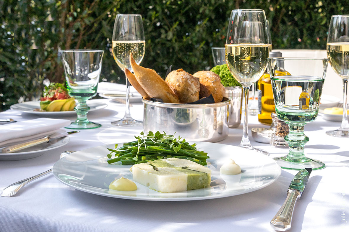– Foie gras com terrine, geleia de vinho tinto e brioche;