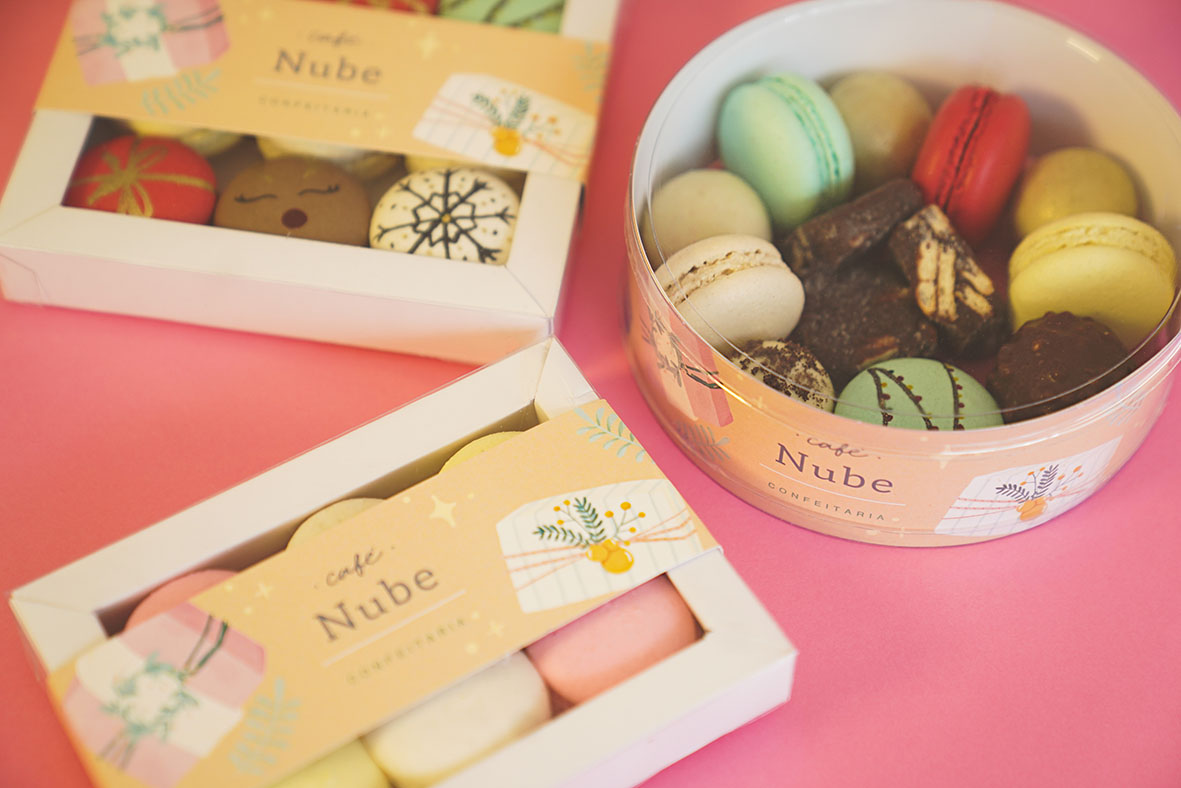 – Caixas de macarons em três quantidades diferentes;