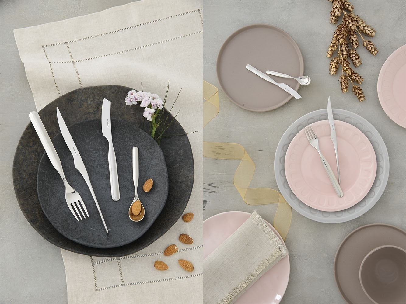 – Jogo de mesa talher Bugatti – quatro peças: garfo, faca, colher de mesa e uma colher para café.