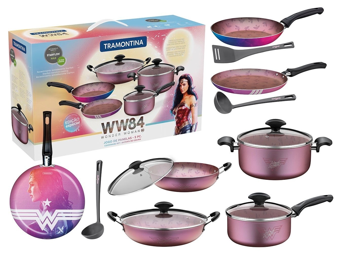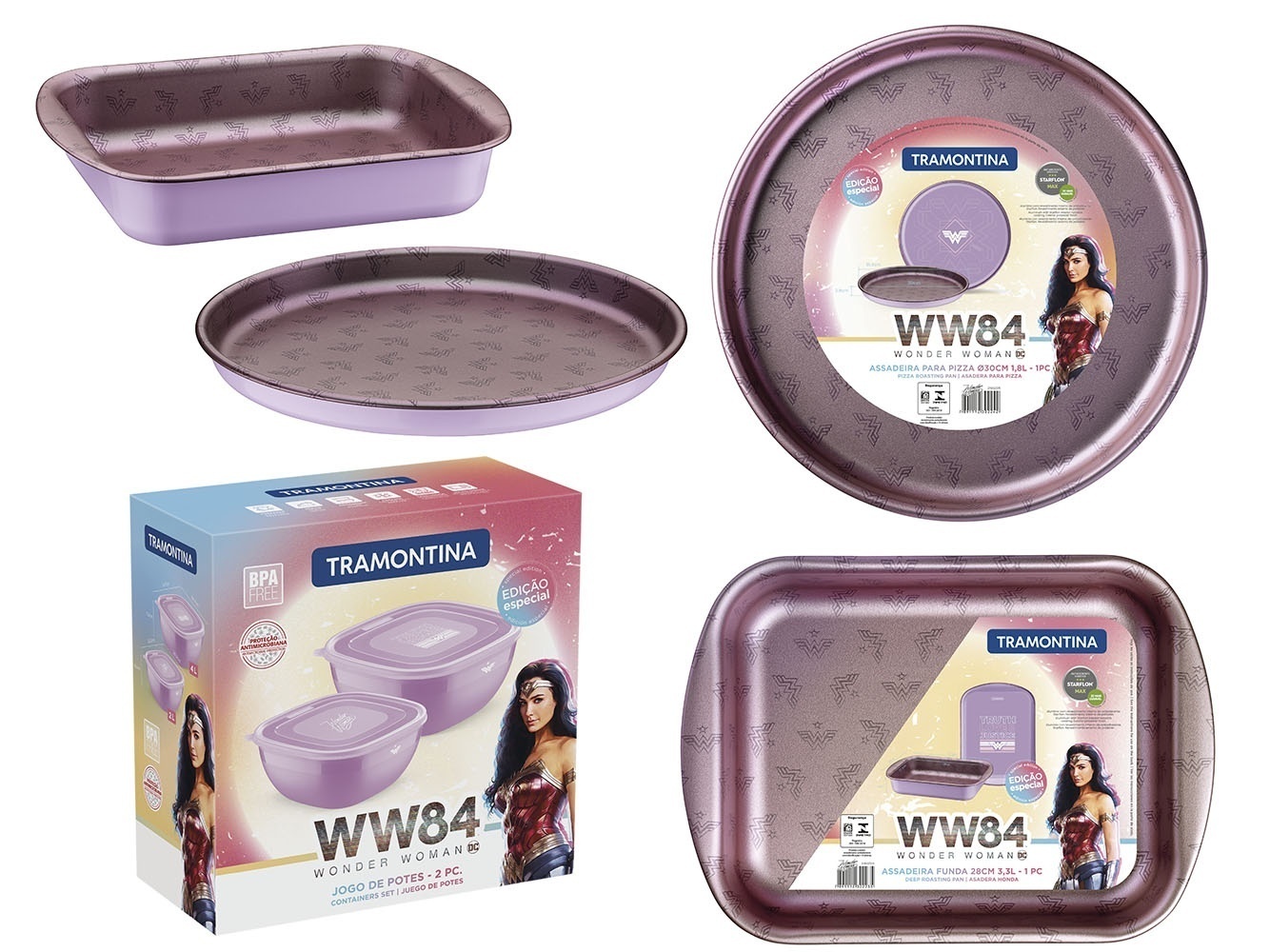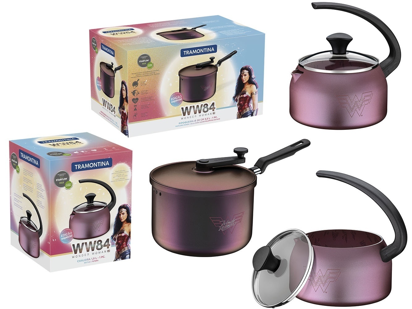 A Tramontina levou a Mulher-Maravilha para a cozinha. Quer dizer, para itens de cozinha, em uma linha inspirada no filme “Mulher-Maravilha 1984”, da Warnes Bros.