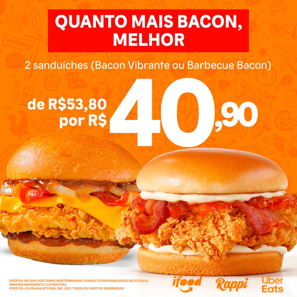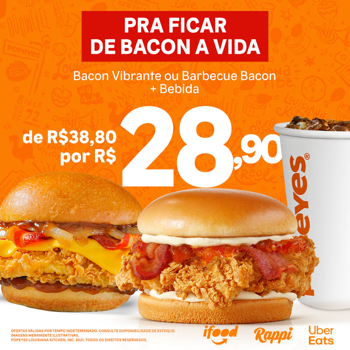 Se você é adepto do lema “bacon é vida”, preste atenção neste post. É que o Popeye’s® está com uma promoção no seu delivery, com lanches que levam a proteína e que vai até o dia 31 de março.