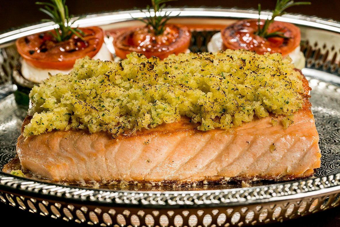 – Salmão na crosta de pistache ao molho de limão (R$ 111,30/ 600 gramas).