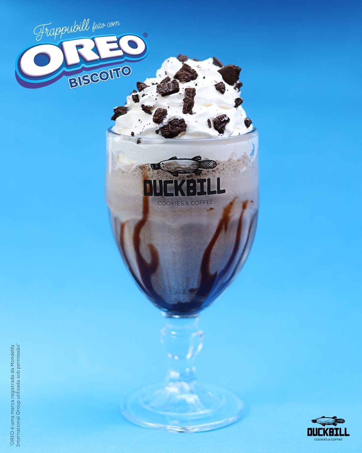 Dessa parceria nasceram o Frappubill, o Espresso e os Cookies especiais, todos da Linha Duckbill Oreo.