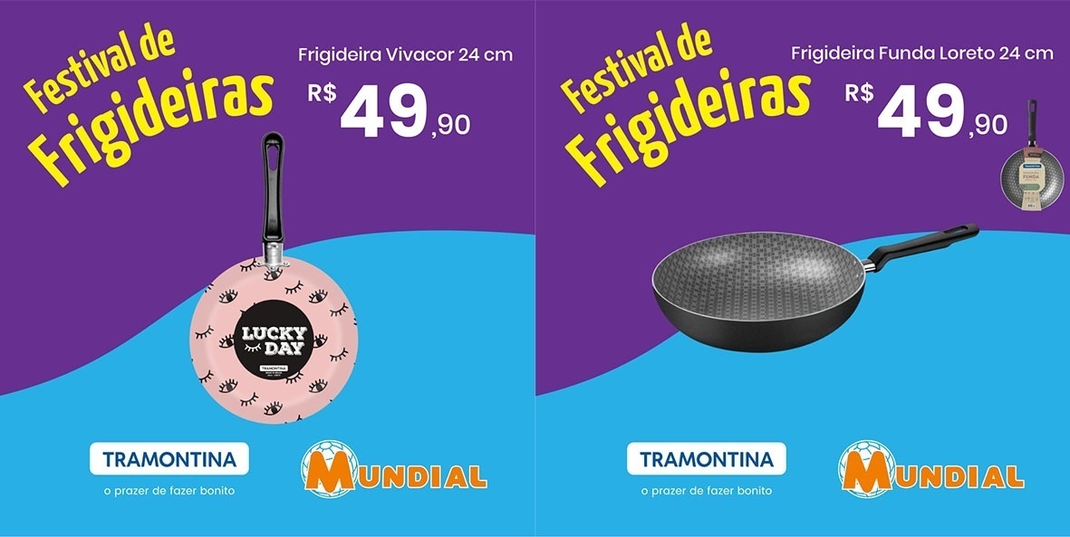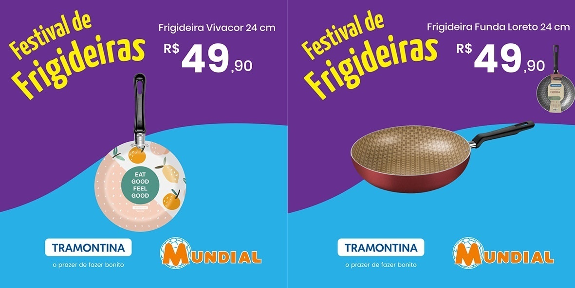 A rede Supermercados Mundial está com promoção em utensílios domésticos. O Festival de Frigideiras Tramontina traz diversos itens da categoria com preços especiais até o dia 24 deste mês.