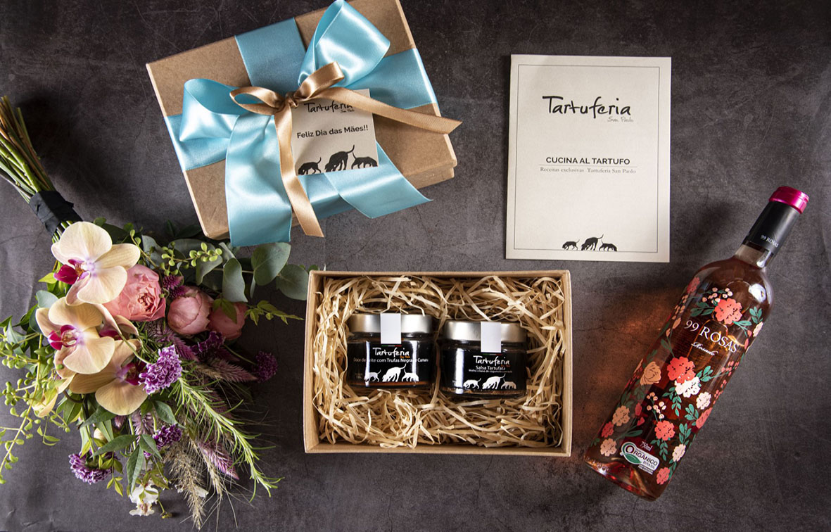 Entre os dias 26/04 e 09/05, há também o kit especial Dia das Mães (R$ 208,00), que traz Doce de Leite com Trufas Negras e Cumaru; Salsa Tartufata, encarte com duas receitas exclusivas: risoto à carbonara Tartufato e pudim de Doce de Leite com Trufas Negras. É possível incluir o vinho orgânico 99 Rosas (R$ 328,00) e/ou um buquê do Bosque (preço sob consulta).
