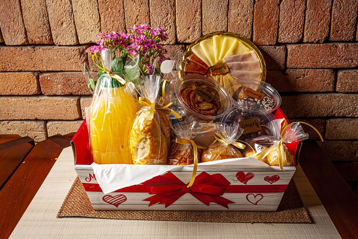 A padaria tem duas cestas para a data: a Cesta Happy Hour, com queijos variados, ciabatta, crostata, patê de ervas finas, morangos, palmiers, mini brigadeiros, geléia, mix de nuts, um vinho tinto ou um branco (a escolha do cliente), um par de máscaras e um cartão, no valor de R$ 235,00 (serve duas pessoas).