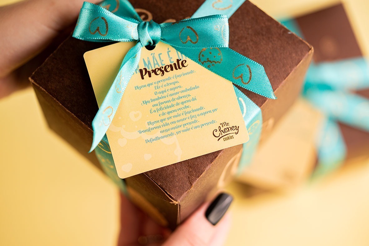 Na rede que tem como destaque os cookies, a sugestão para o Dia das Mães é o Cookie Bomb, um cookie recheado que traz junto um poema em homenagem à data, além da tradicional caixa personalizada e tag de presente da rede.