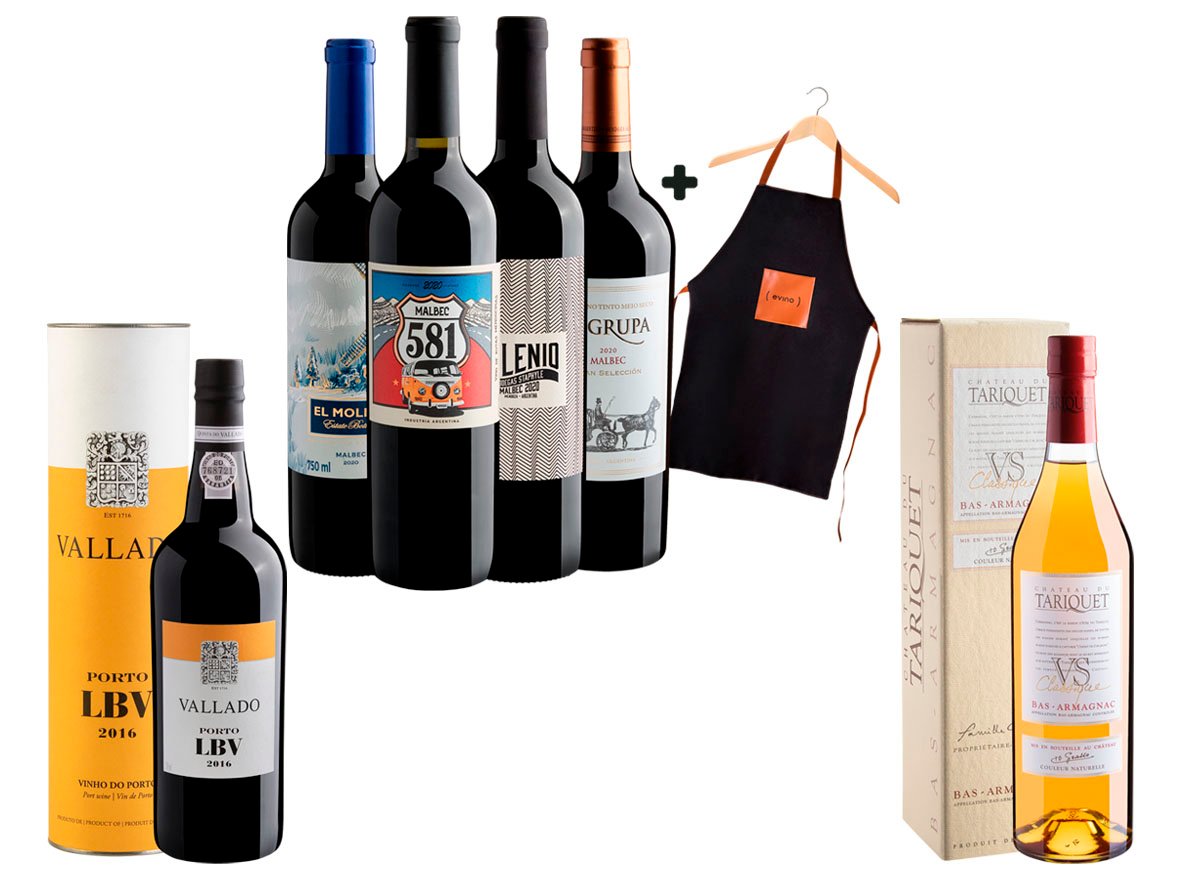 – Kit Churrasco com Malbec + Avental: com quatro rótulos diferentes do tipo Malbec argentino (El Molino Malbec, La Grupa Gran Selection, 581 Malbec e Bodegas Staphyle Silenio Malbec) e um avental exclusivo.
