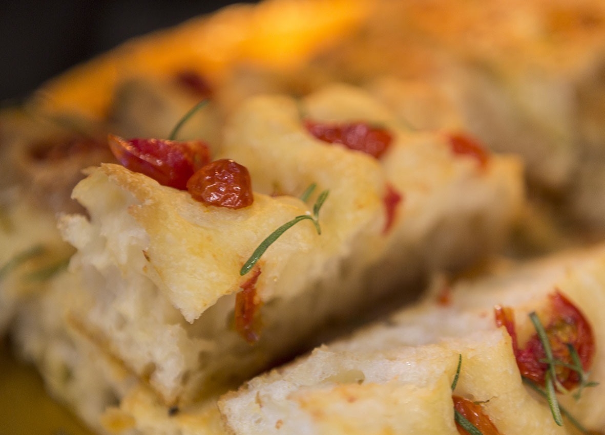 – Focaccia de tomatinho cereja orgânico e alecrim (R$ 120,00 cada e R$ 70,00 a 1/2 unidade).