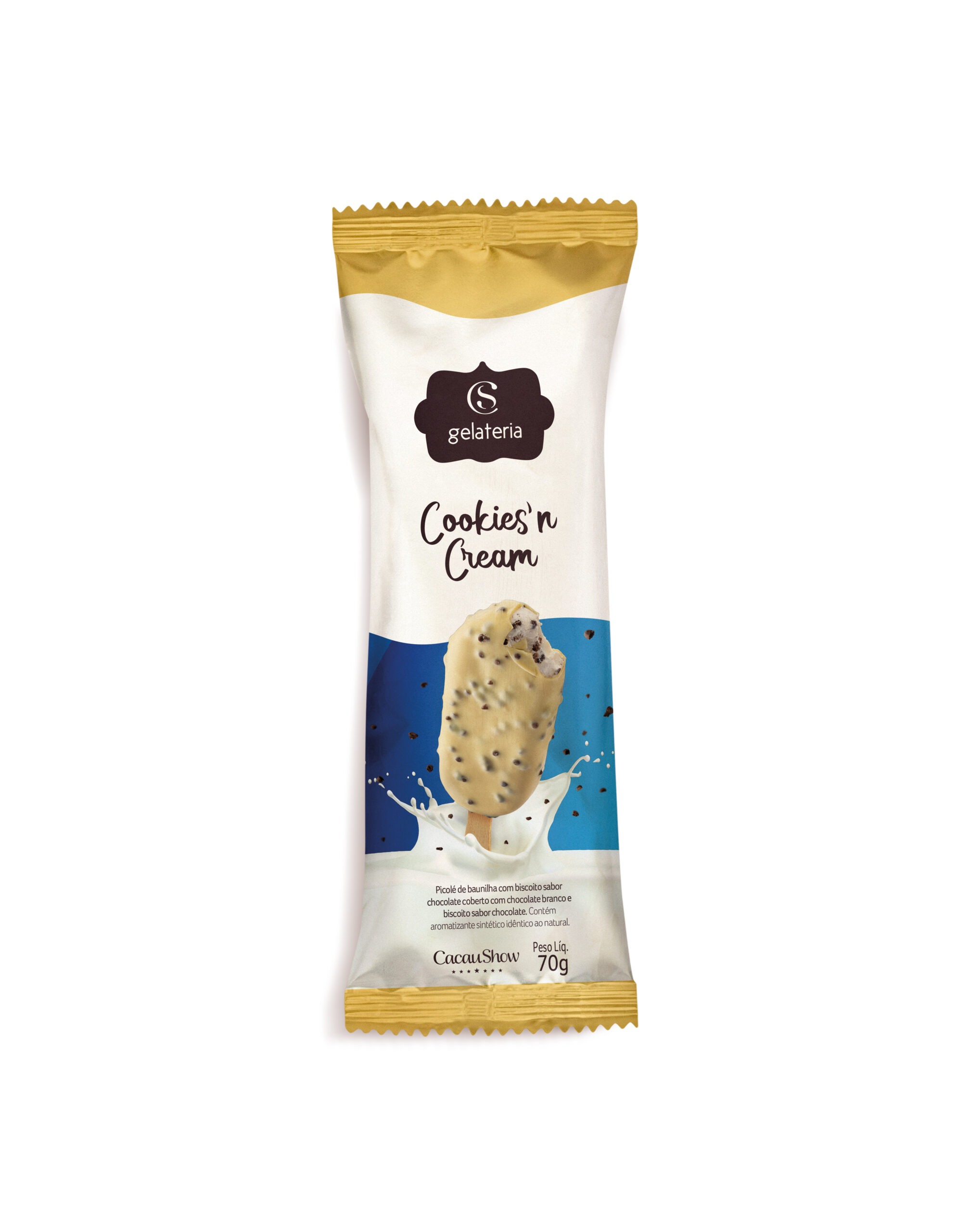– Gelato Cookies’n Cream 70g: gelato de baunilha com biscoito sabor chocolate. A partir de R$ 10,90 para Cacau Lovers.