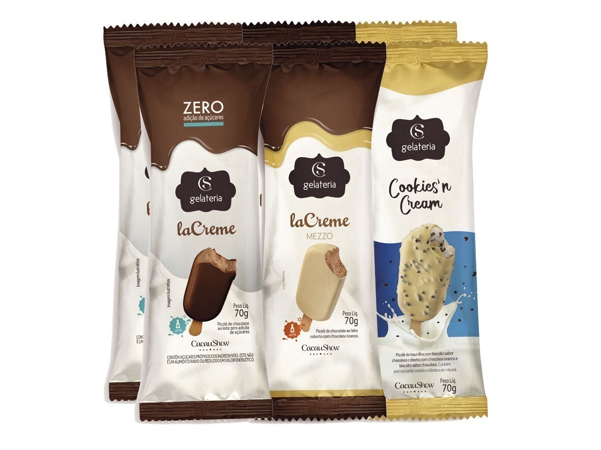– Gelato laCreme Zero Adição de Açúcare 70g: gelato de chocolate ao leite zero adição de açúcar. A partir de R$ 12,90 para Cacau Lovers.