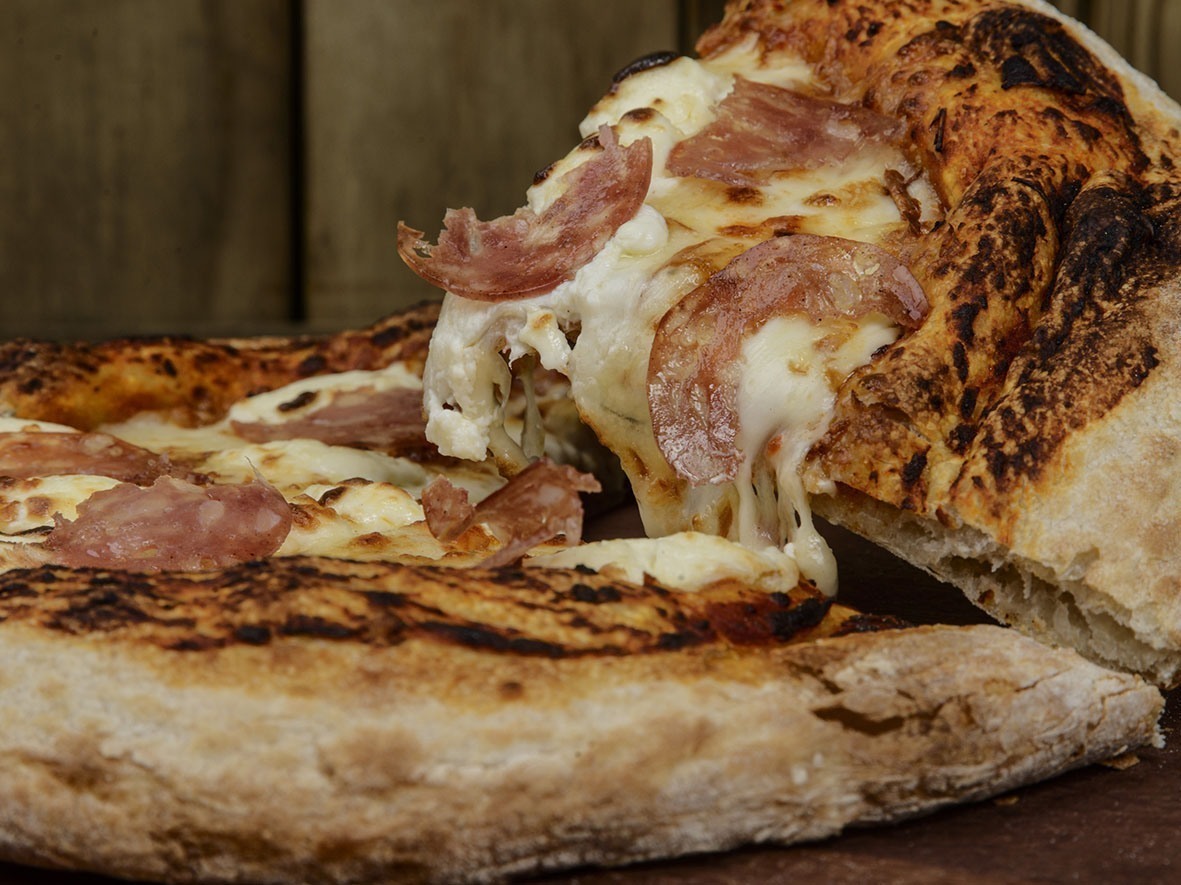 Todas as pizzas são feitas com massa de fermentação natural e trazem ingredientes de produtores locais, uma forma de apoiar os produtores e apresentar novas opções, sempre de forma descomplicada.