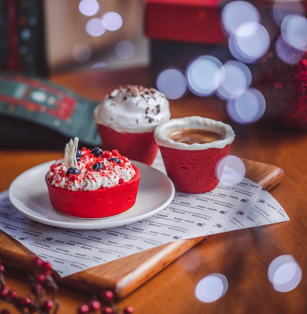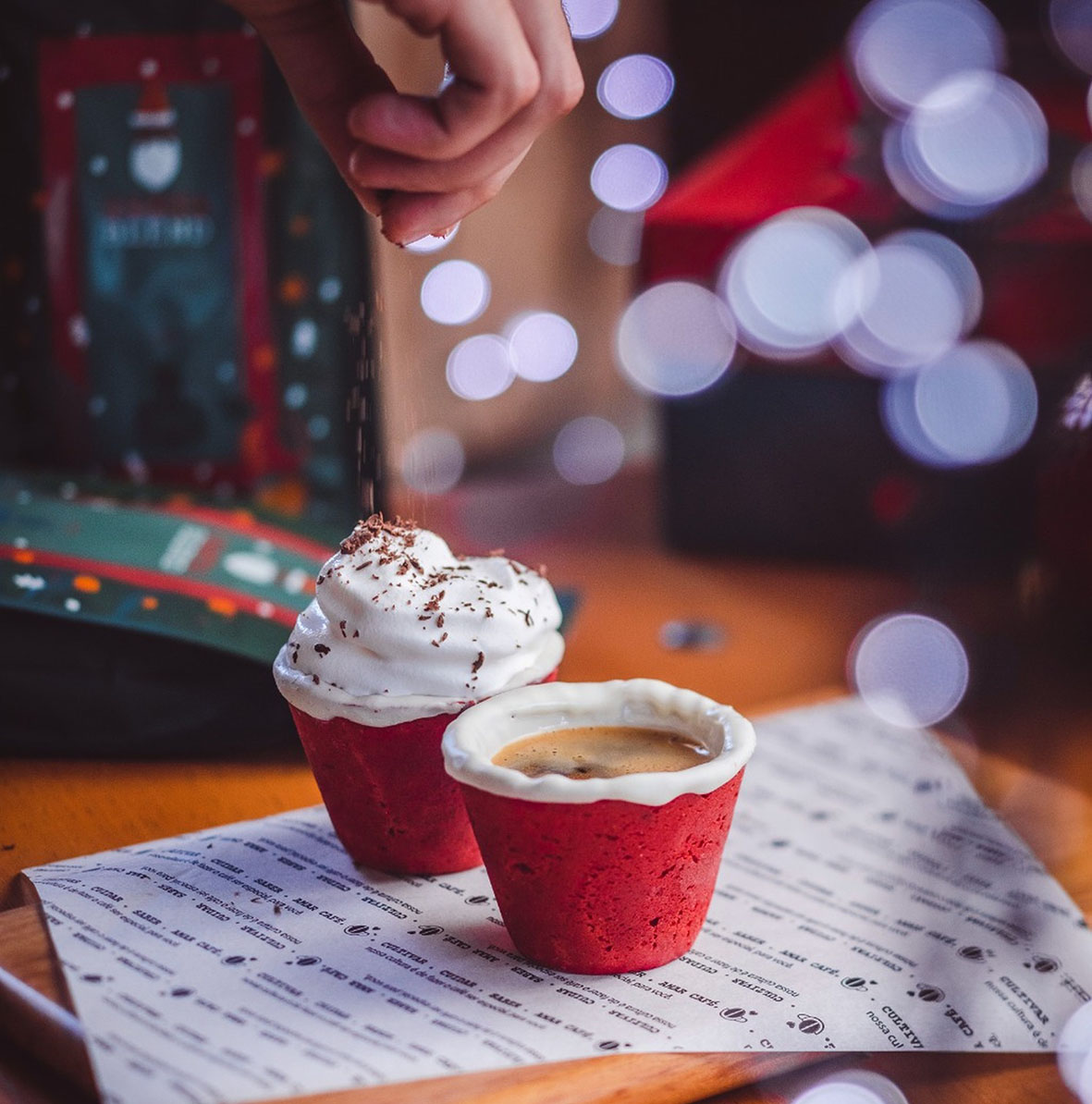 Além do café há doces para a data, como o Cookie Cup (copinho comestível de biscoito, com um camada de chocolate branco , por R$ 17,00), ou o chocolate quente com chantilly (R$ 20,00), a tortinha individual Red Velvet , com massa flora vermelha e recheio clássico Red Velvet com creme de creamcheese (R$ 20,00).