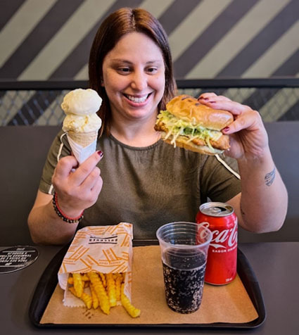 No cardápio o lançamento é o Biggie B, o maior lanche da rede. Ele tem 150 gramas de carne fresca 100% Angus, queijo cheddar, alface, cebola roxa chapeada, picles agridoce e maionese tipo Kewpie (maionese de óleo de gergelim, shoyu e vinagre de arroz), no pão de de brioche com gergelim.
