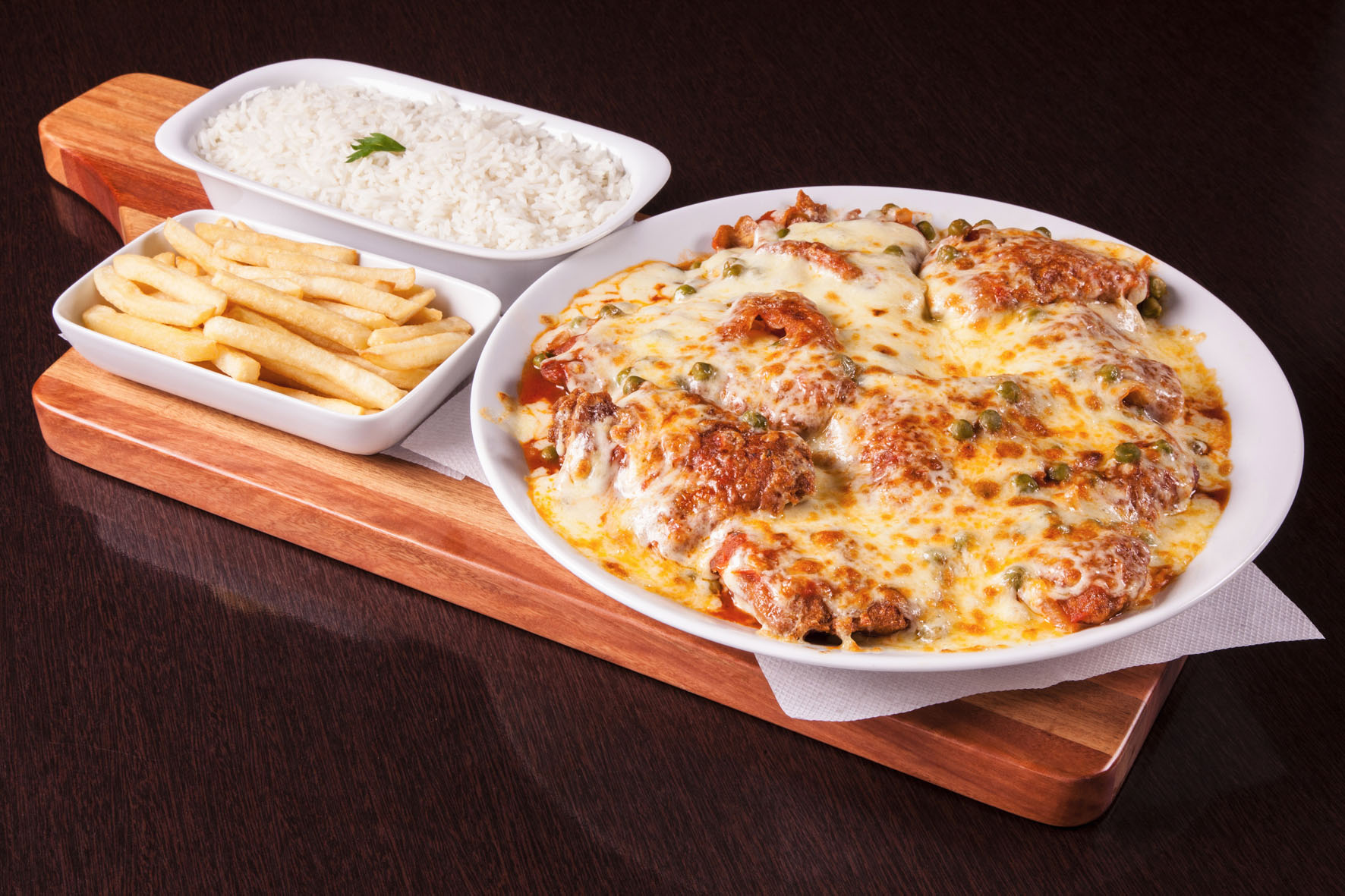 – Parmegiana Água Doce (com frango e queijo).