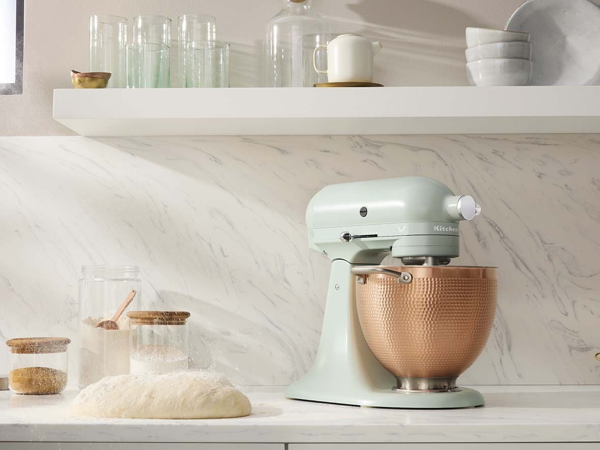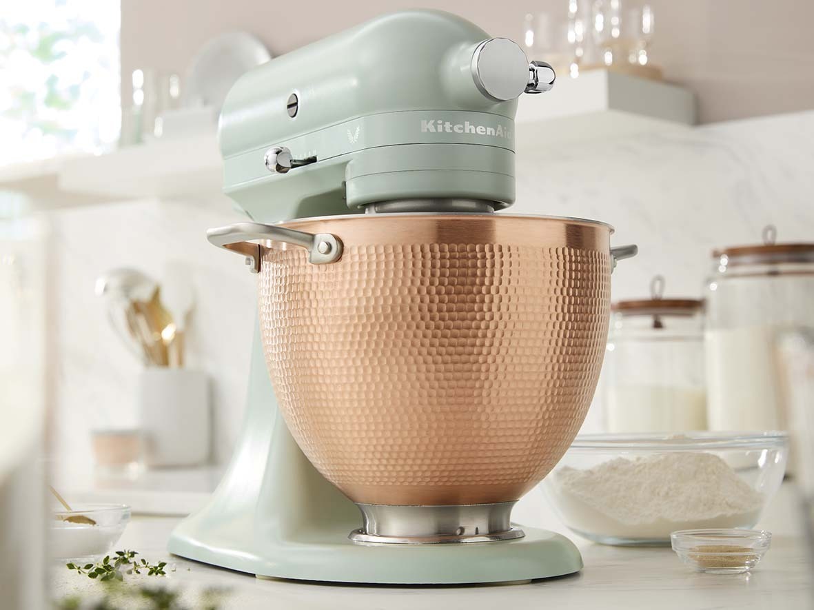 A KitchenAid acaba de lançar a Design Series Blossom, uma batedeira que traz um diferencial: uma tigela que traz cobre que pode ser oxidado naturalmente ou, se polido regularmente, pode manter a aparência de brilho.