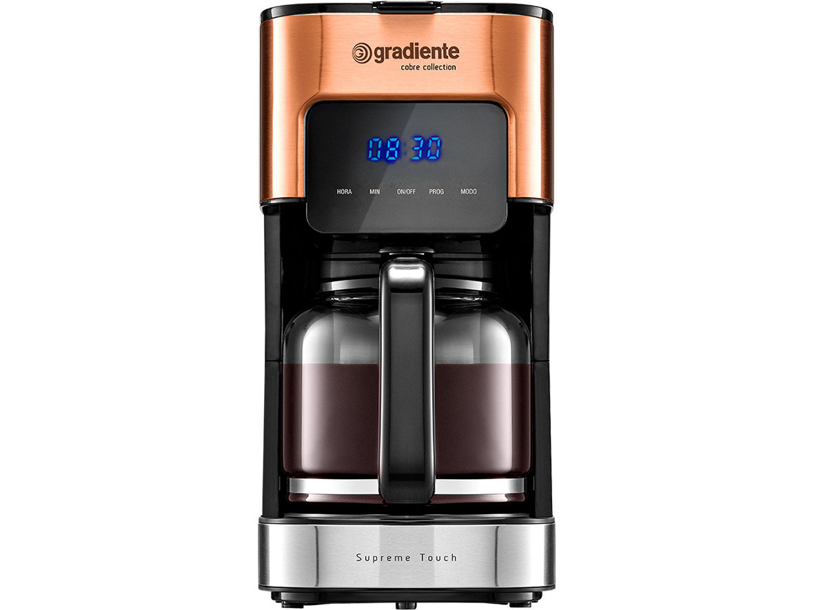 – Cafeteira Digital Programável Supreme Touch: com função para definir a hora para o café ficar pronto, com até 24h de antecedência.