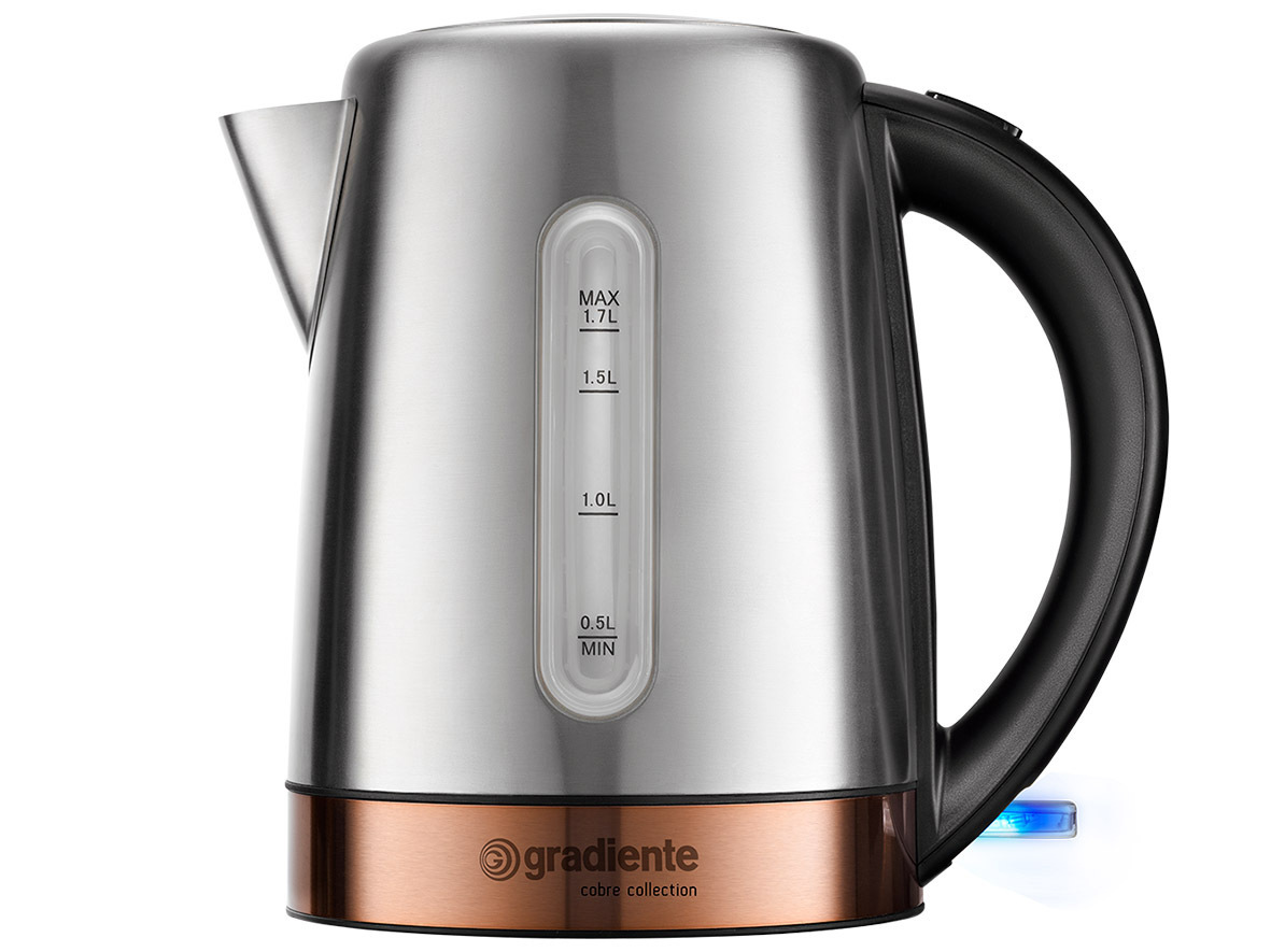 – Chaleira Elétrica Daily: ferve água em minutos e na quantidade certa para auxiliar no preparo de arroz, macarrão, caldos, sopas, chimarrão, chás, entre outros alimentos. Produto em inox e detalhe em cobre metalizado.