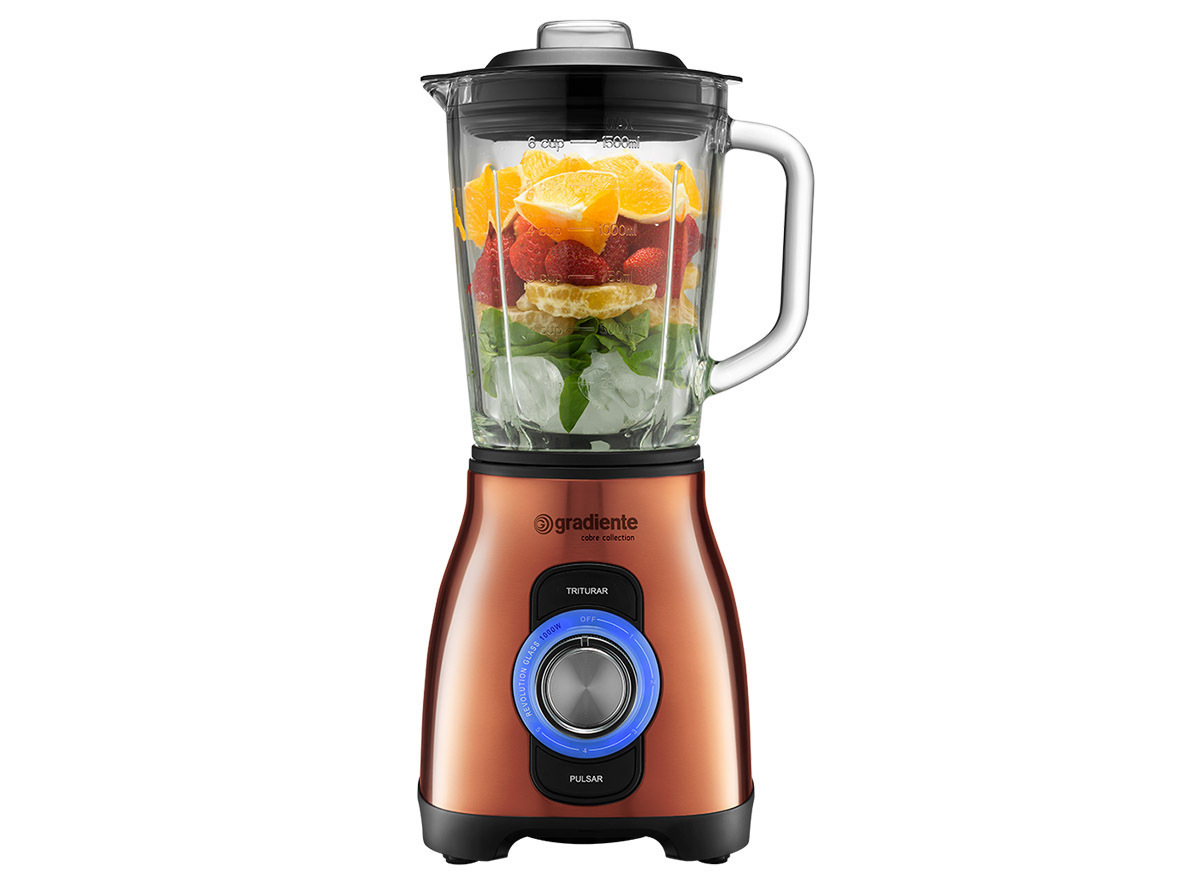 – Liquidificador Revolution Glass: com design exclusivo e acabamento refinado em cobre, tem alto poder de trituração e permite o preparo de alimentos consistentes ou congelados.