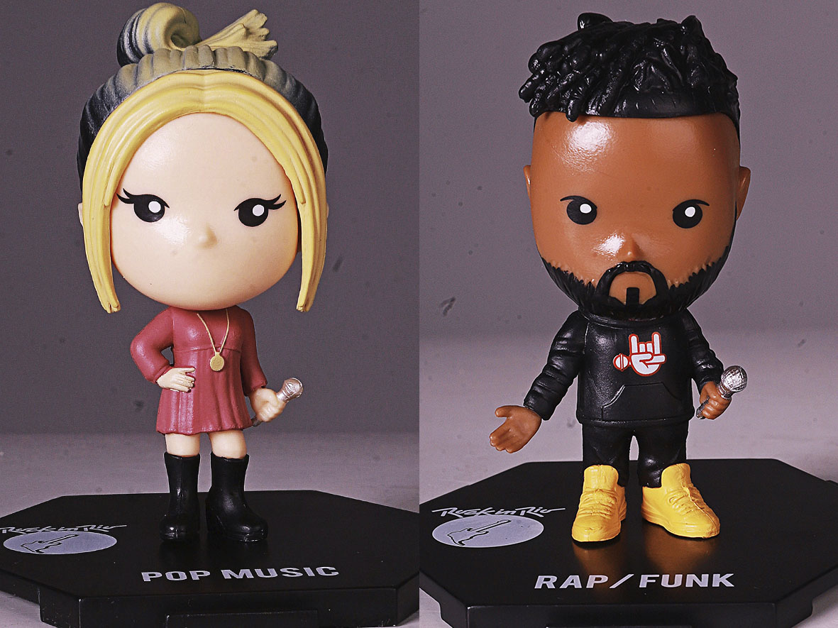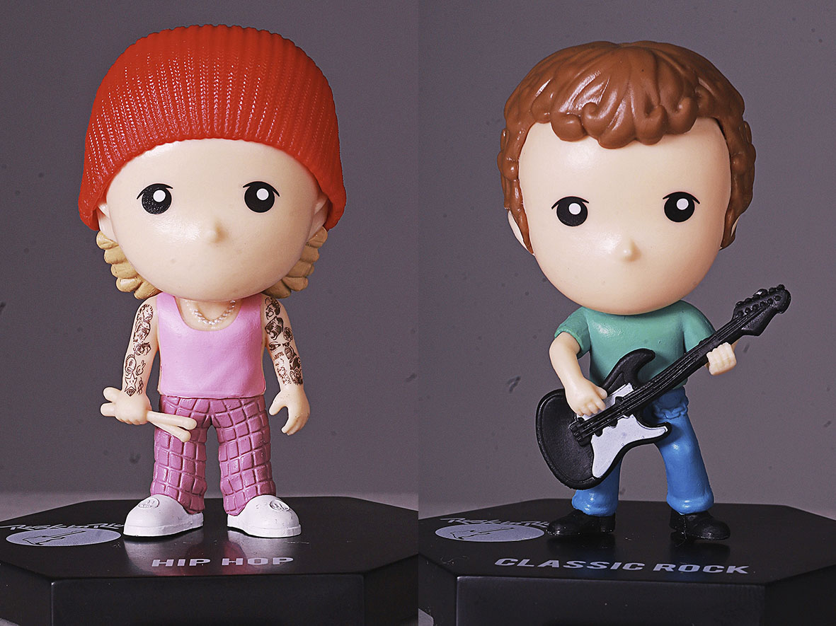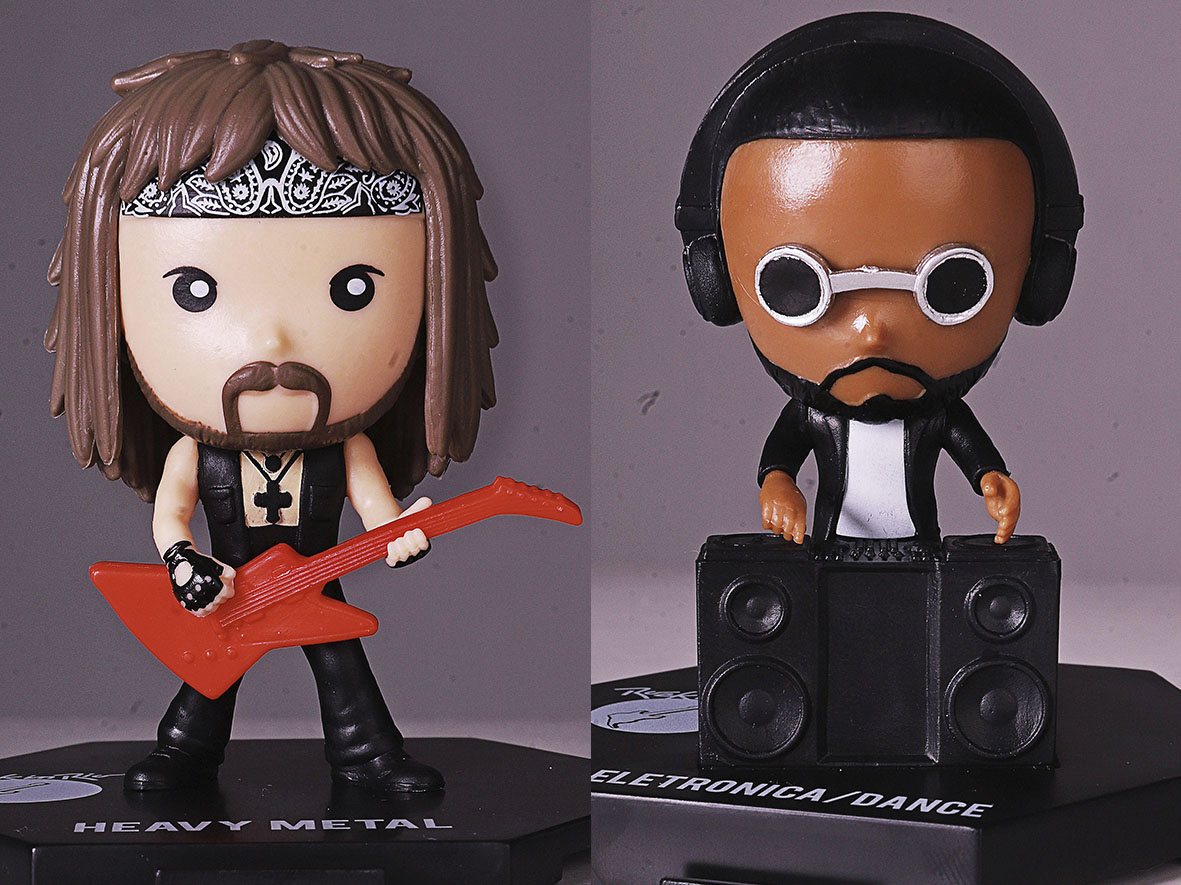 Cada um deles representa um gênero musical – heavy metal; hip-hop; rap/funk; pop music; eletrônica/dance e classic rock –, e que podem interagir no virtual por meio de uma ferramenta de realidade aumentada. As miniaturas encaixam entre si, formando um palco.