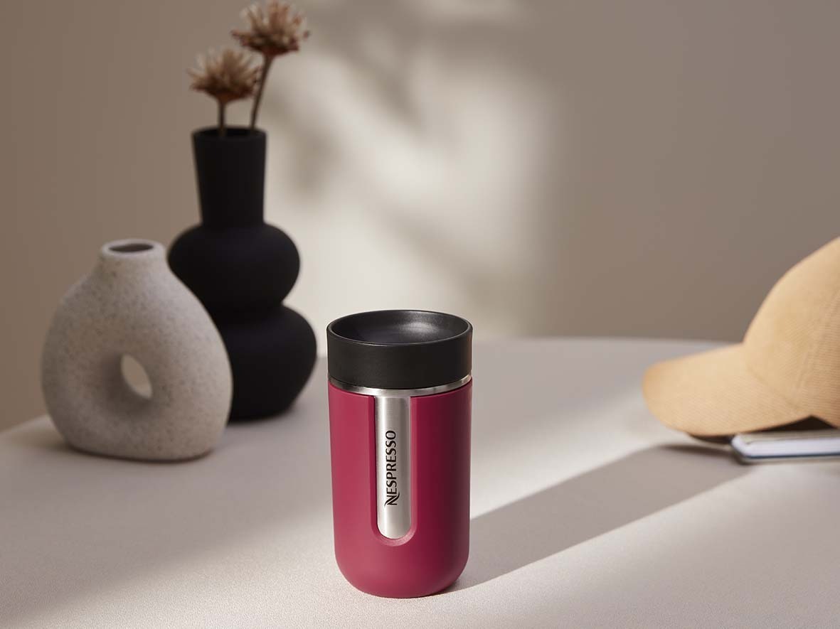 Outra novidade é a Travel Mug Nomad Framboesa, com capacidade de 300ml. Ela é feita em aço inoxidável, é térmica e promete preservar a temperatura da bebida, quente ou fria, por mais tempo. Também disponível a partir de 1º de dezembro, no valor de R$ 125,00.