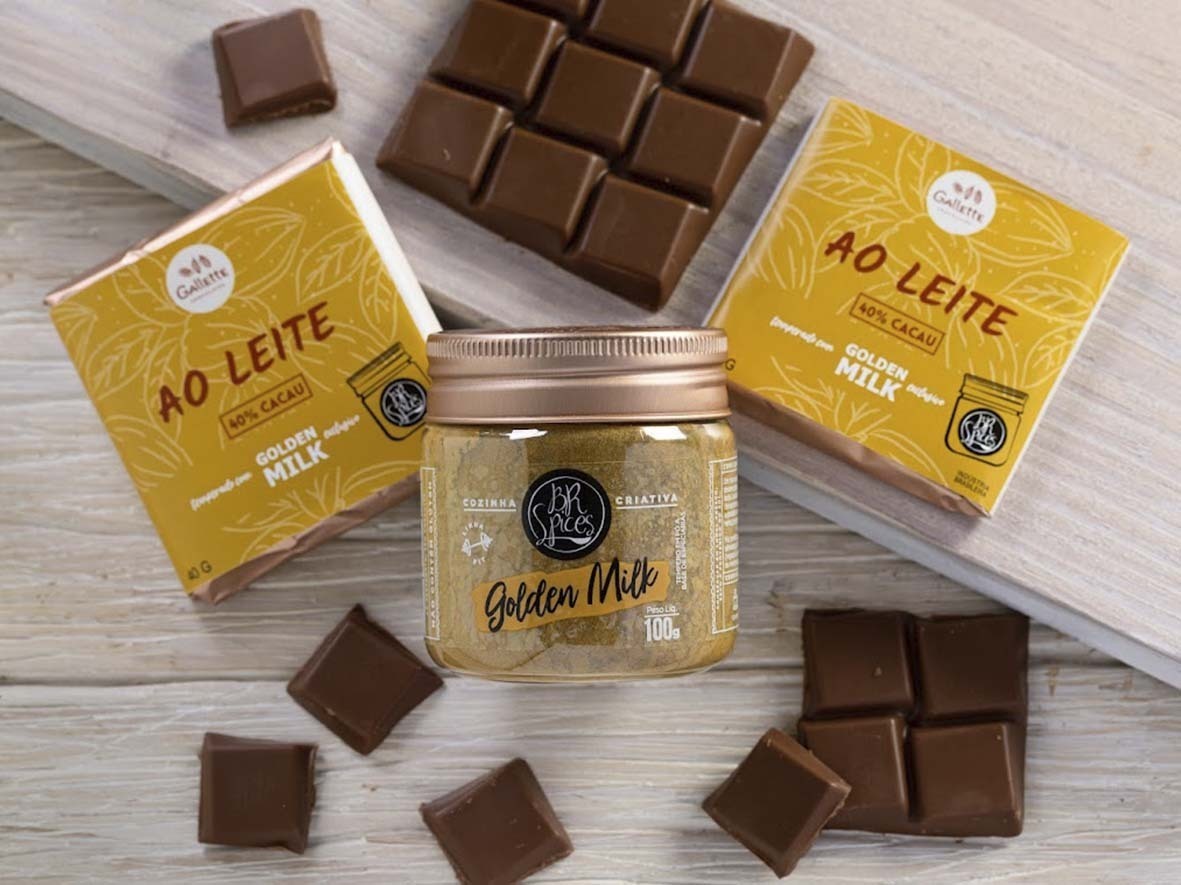 – Chocolate ao Leite com Golden Milk: com chocolate 40% cacau, cúrcuma, canela, gengibre, cardamomo, pimenta-do-reino e pimenta caiena.
