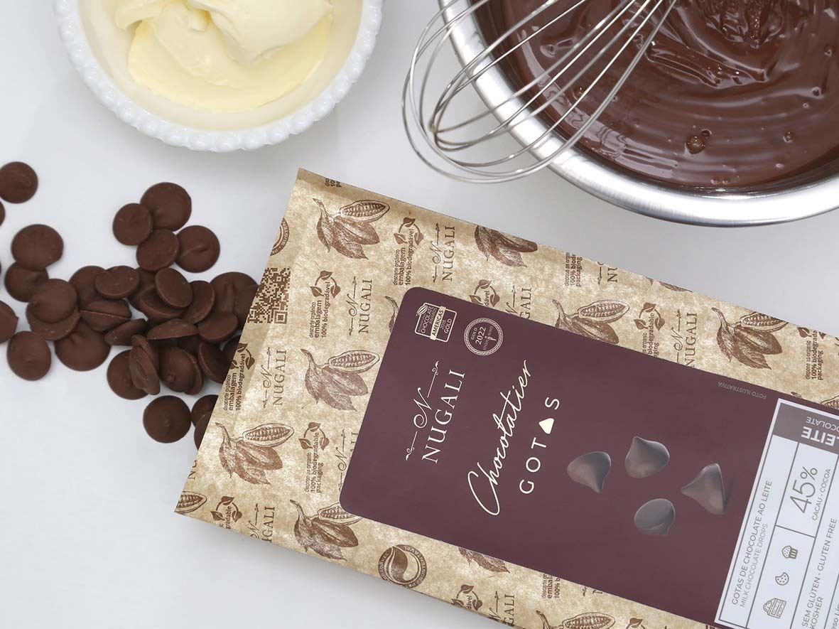 A Nugali Chocolates tem uma novidade para os fãs de cozinha e para quem trabalha na confeitaria. Chega aos pontos de venda o Chocolatier Gotas, uma opção para o preparo de pratos como bolos, cookies e brownies ou para recheios de pizzas, crepes e outras possibilidades.